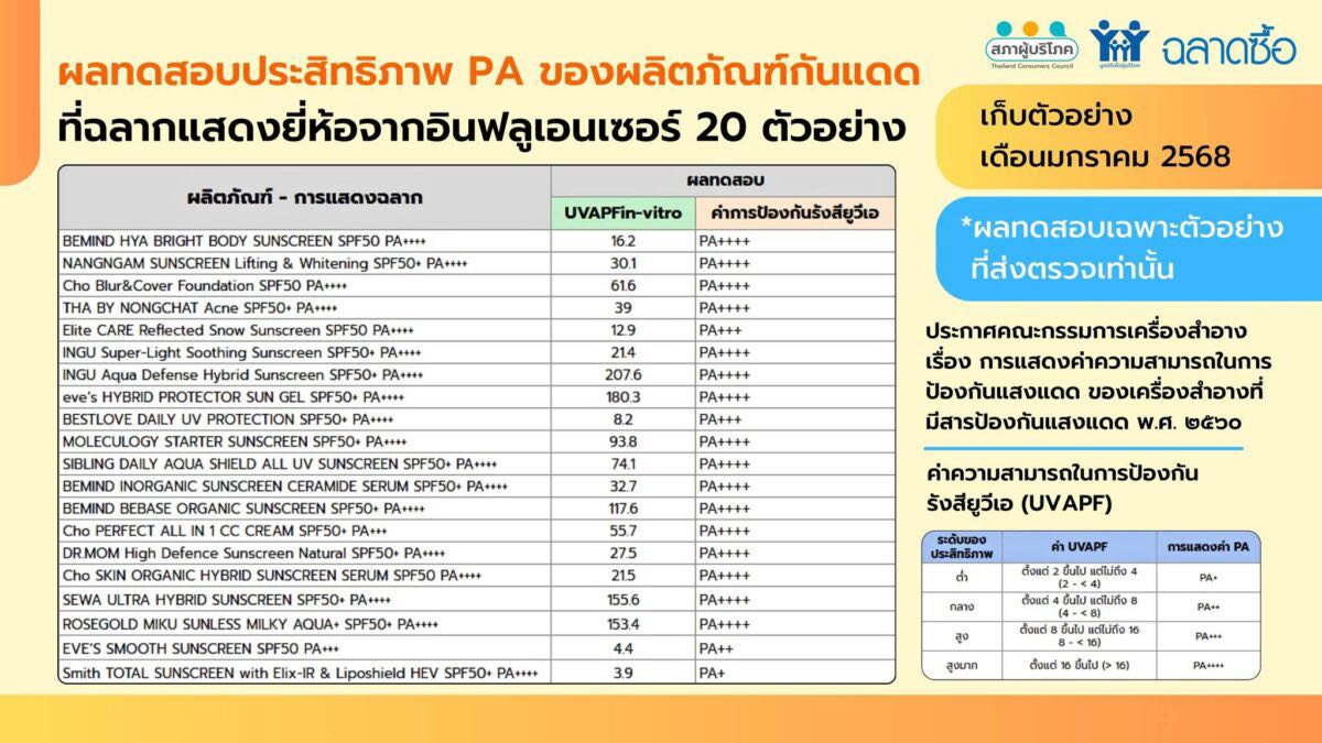 สำหรับผลทดสอบค่า PA พบว่า 4 ตัวอย่าง ที่มีการแสดงค่า PA ไม่เป็นไปตามที่แสดงไว้บนฉลาก ได้แก่