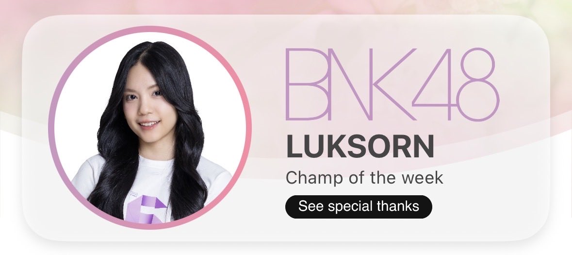 คำขอบคุณ จากโมบายล์ BNK48 Champ Of The Week ใน App IAM48