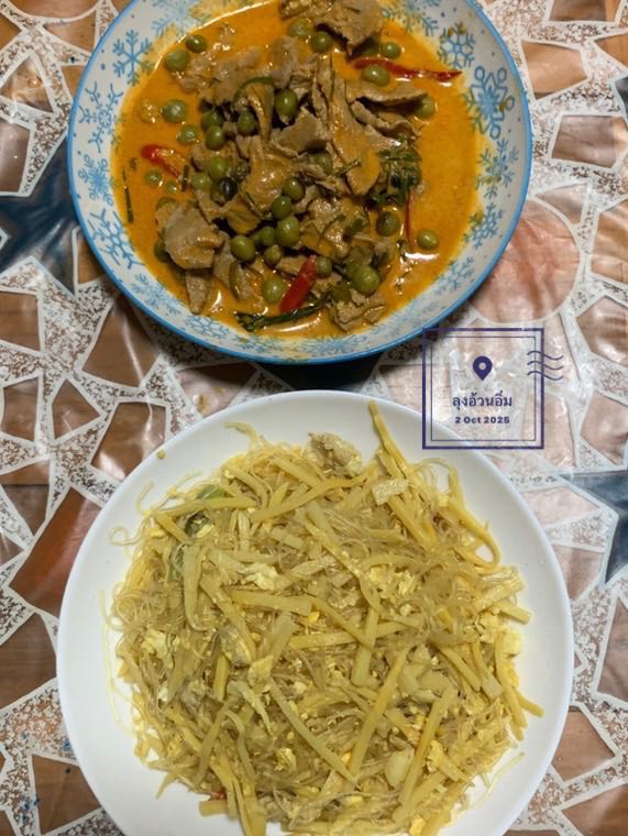: อาหารจับคู่ พะแนงหมู & ผัดหน่อไม้ใส่ไข่ใส่วุ้นเส้น