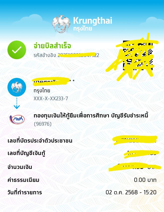 ชำระหนี้ กยศ ผ่าน แอป กรุงไทย แต่ยอดไม่ลดสักที
