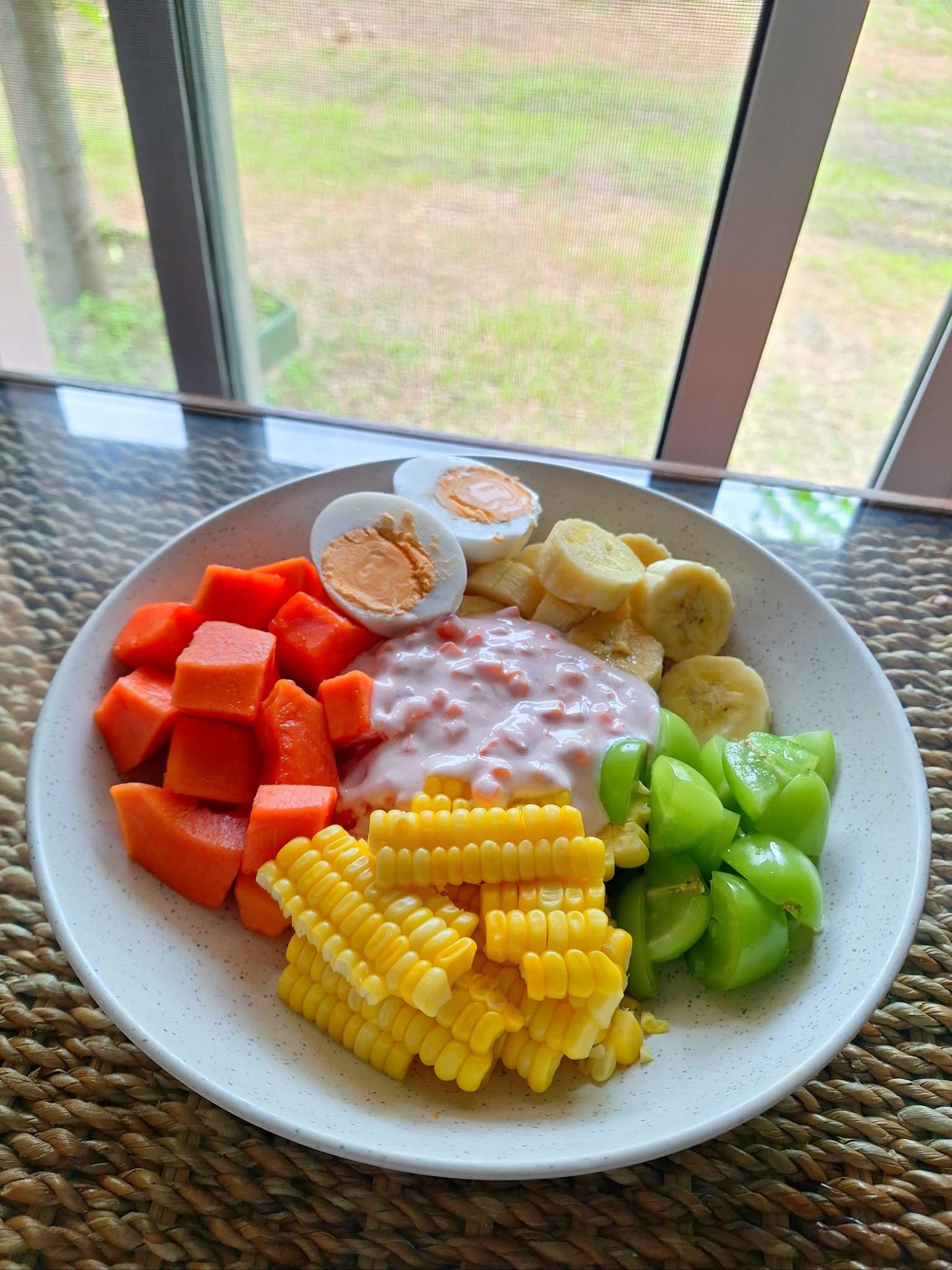 ทานด้วยกันครับ สลัดผักผลไม้เพื่อสุขภาพ 🥗🍌🌽🍇🥚