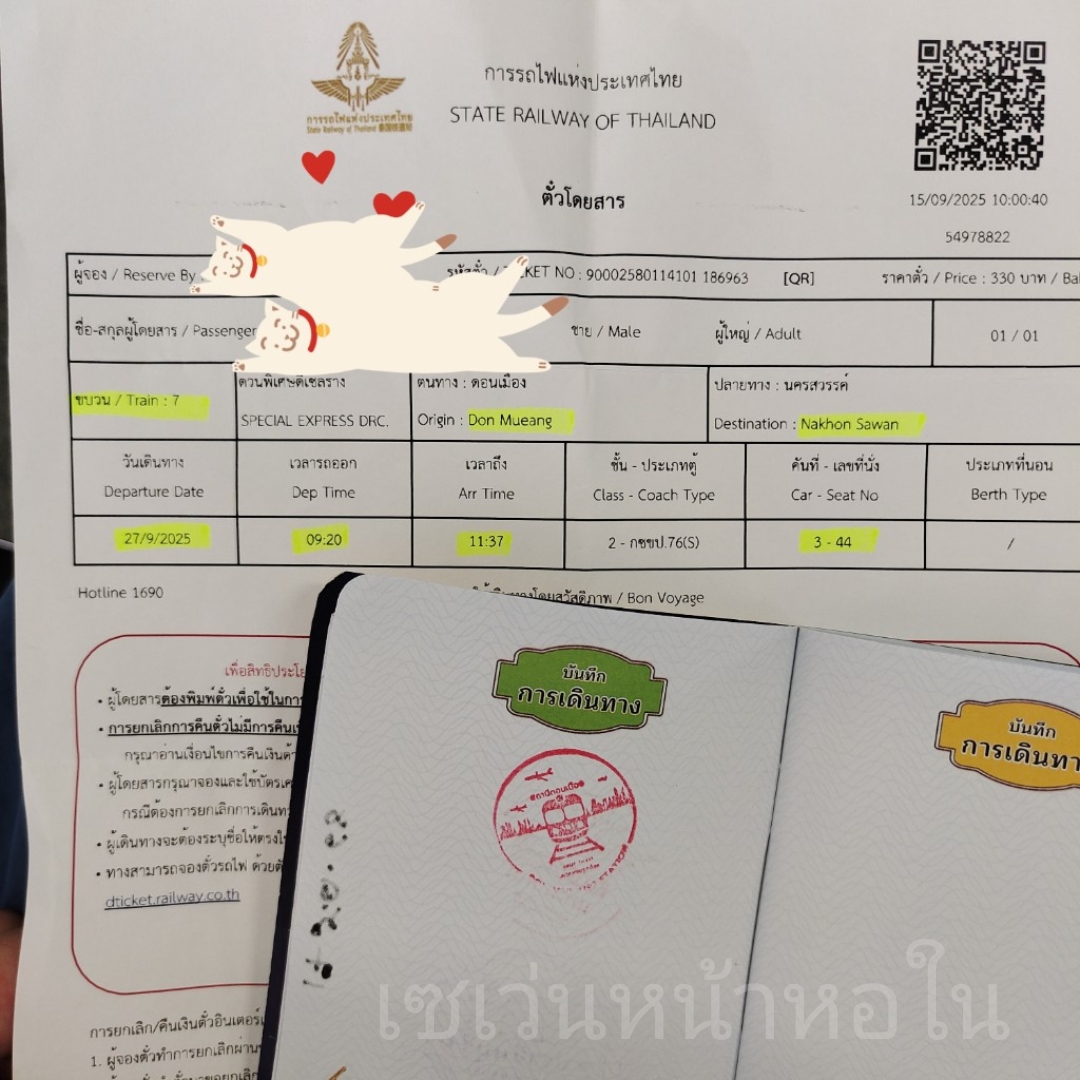 สถานีที่ขึ้น : สถานีดอนเมือง (เวลารถออก 09.20 น.)