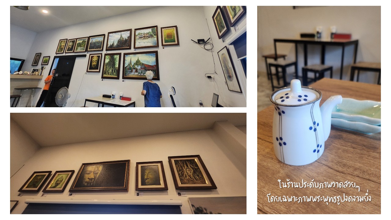 ร้านเล็กๆ น่ารัก ในร้านแขวนภาพวาดสวยๆ โดยเฉพาะภาพพระพุทธรูปสวยมาก