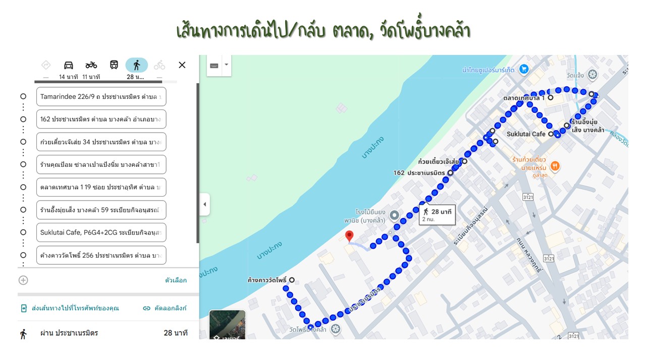 ดูเส้นทางไม่ไกลมาก เลยไม่ขับรถไป ถือว่าได้ออกกำลังกายและเดินชมเมืองบางคล้าไปในตัว
