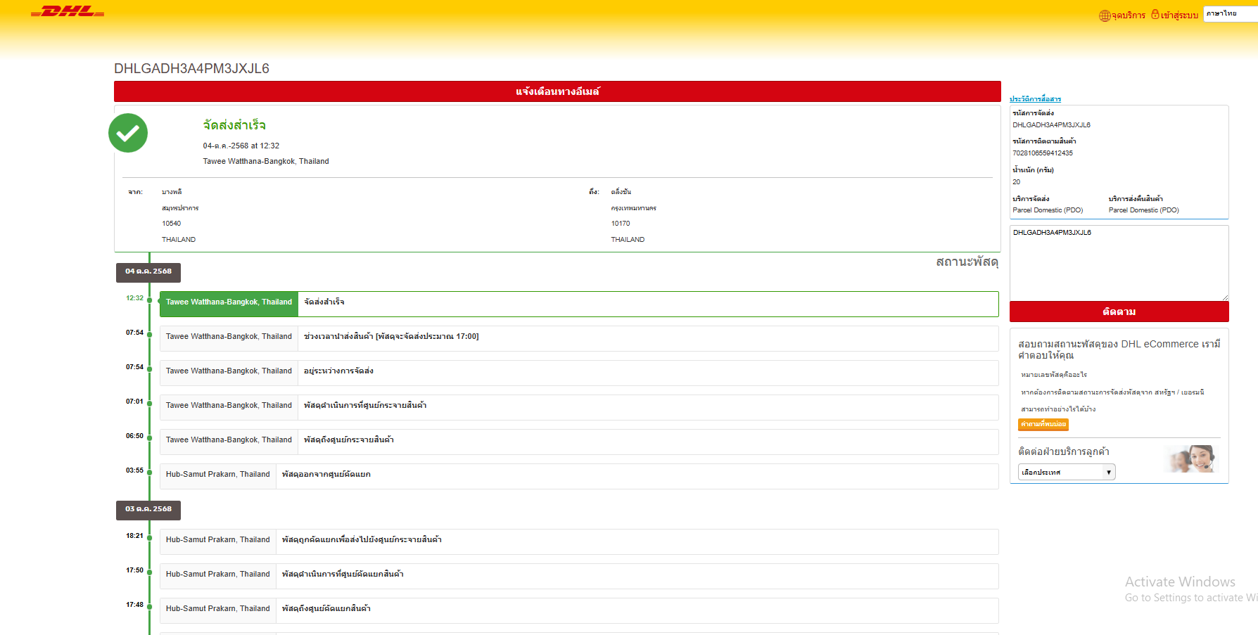 สั่งซิมทรู แต่ไม่ได้รับพัสดุ ขนส่งDHLขึ้นว่า จัดส่งสำเร็จ แต่ไม่ได้รับพัสดุ