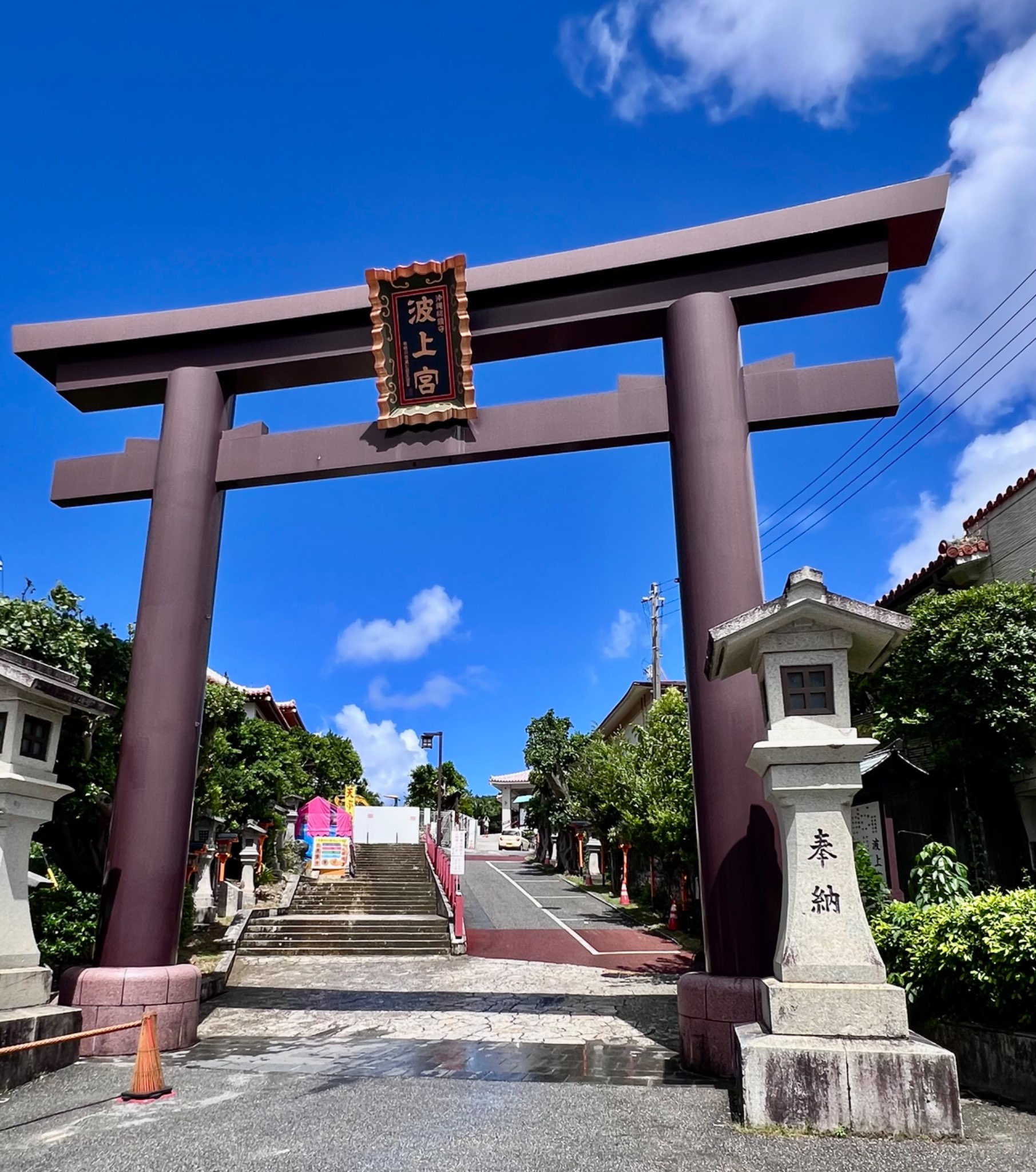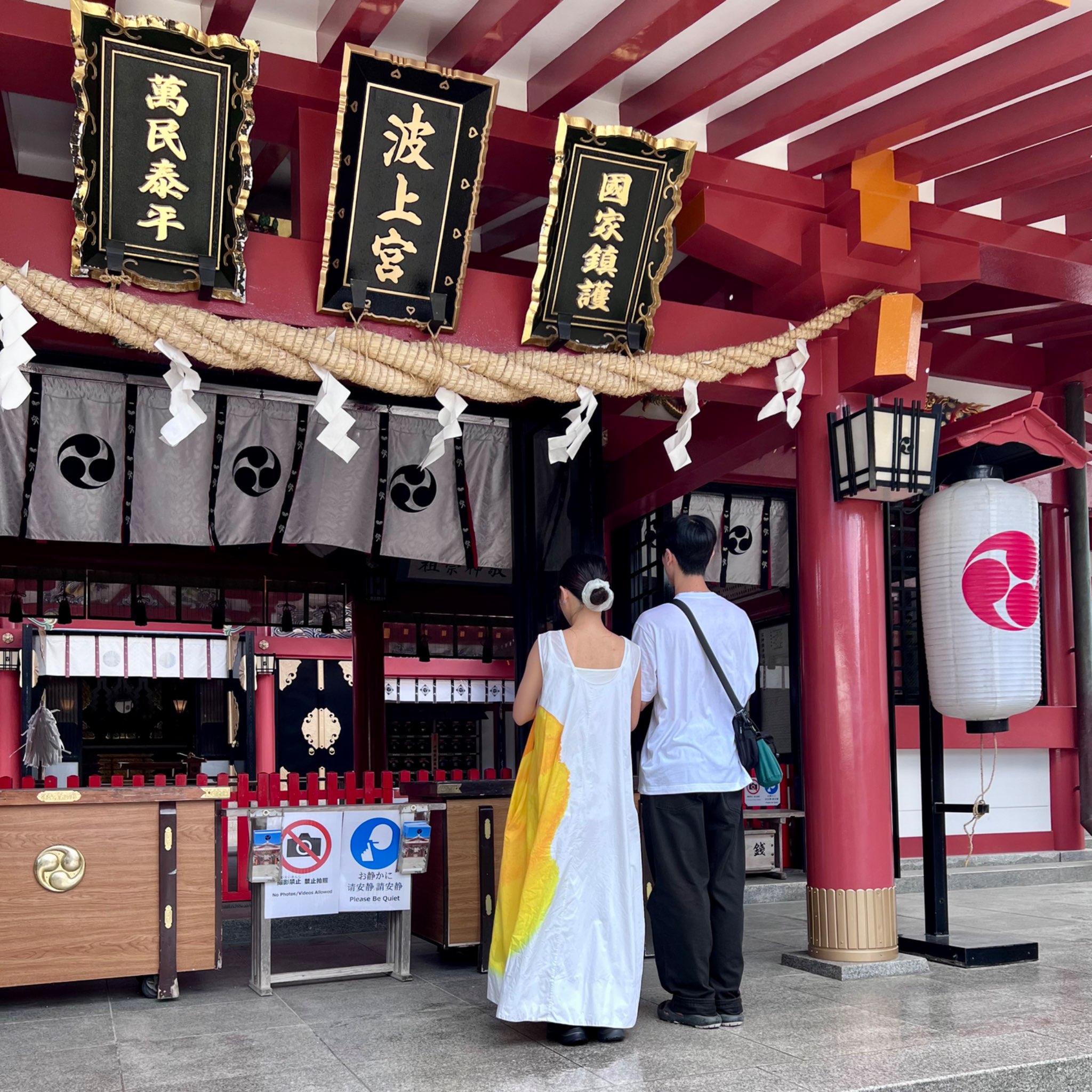 บนหน้าผาที่ชายหาด Naminoue ครับ จากศาลเจ้า เราสามารถเดินลงมาเที่ยวที่ชายหาด Naminoue ได้ด้วย ซึ่งชายหาดขนาดเล็กที่สามารถลงไปว่ายน้ำทะเลเล่นได้ และสิ่งอำนวยความสะดวกให้บริการอย่างเช่น ห้องน้ำและห้องอาบน้ำ