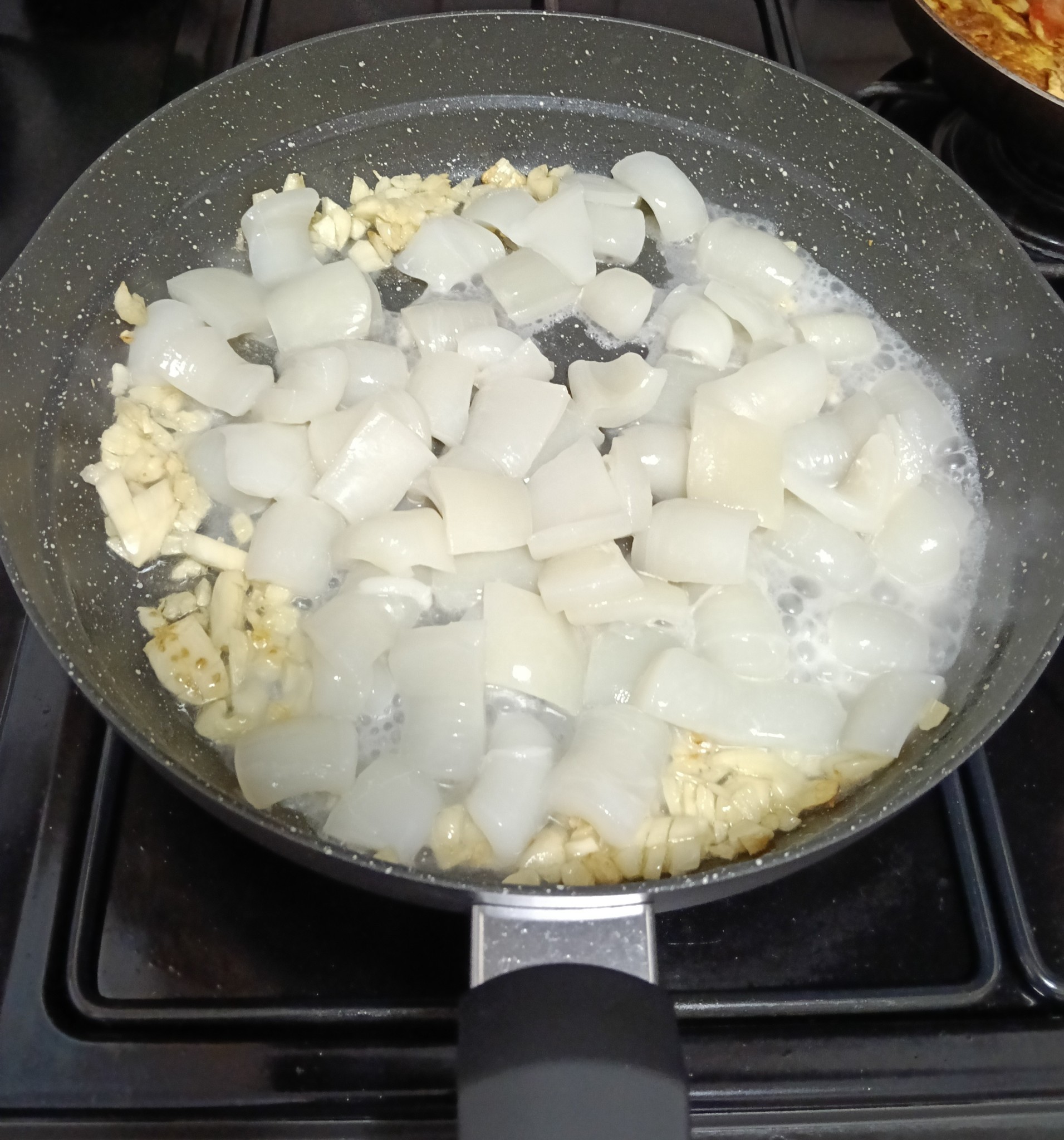 มาเริ่มทำกันเลยค่ะ ล้างปลาหมึกให้สะอาด หั่นเป็นชิ้นพอดีคำเตรียมไว้