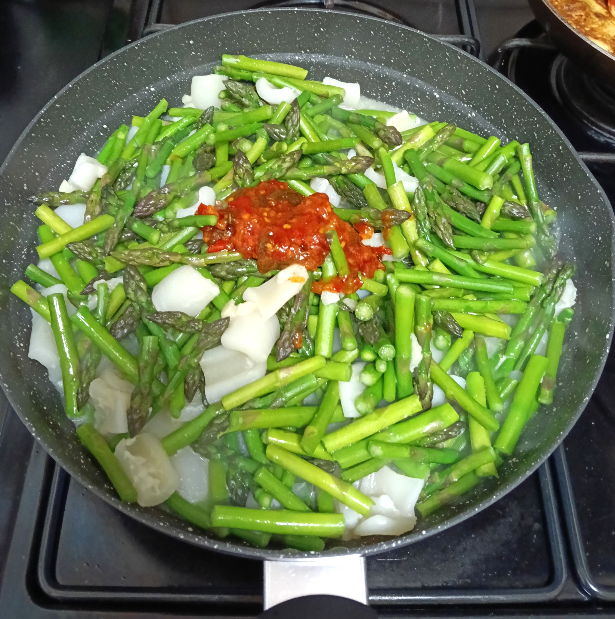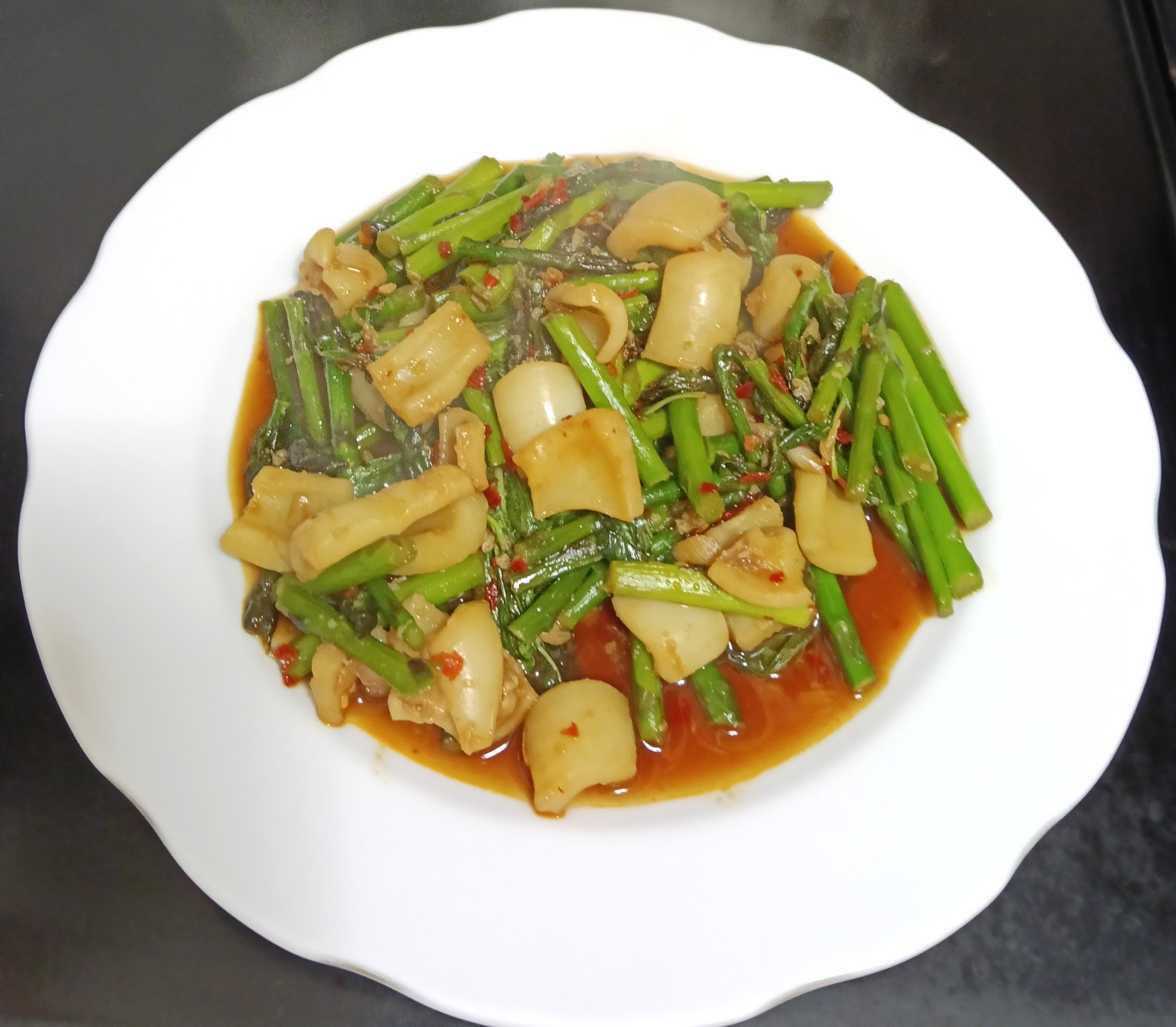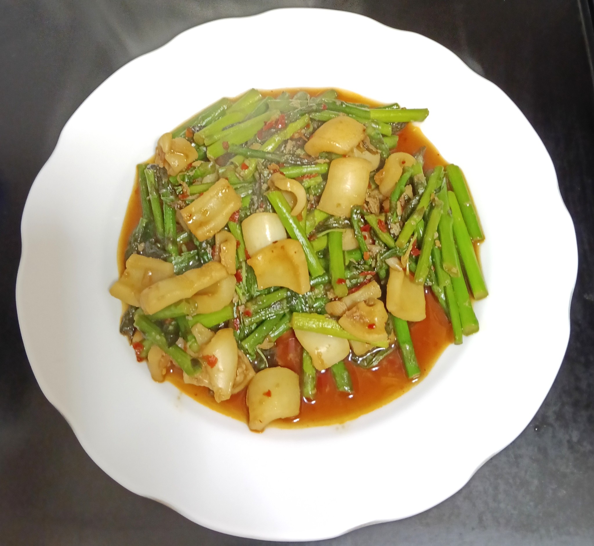 วันนี้ขอเสนอเมนู "ปลาหมึกผัดหน่อไม้ฝรั่งนางพญาร้อยชู้ "