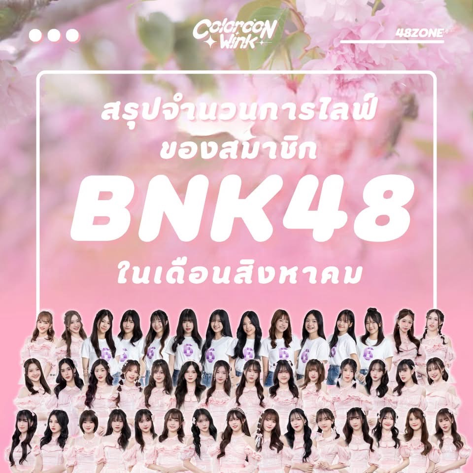 สรุปจำนวนการไลฟ์ของสมาชิก BNK48 ในเดือนกันยายน