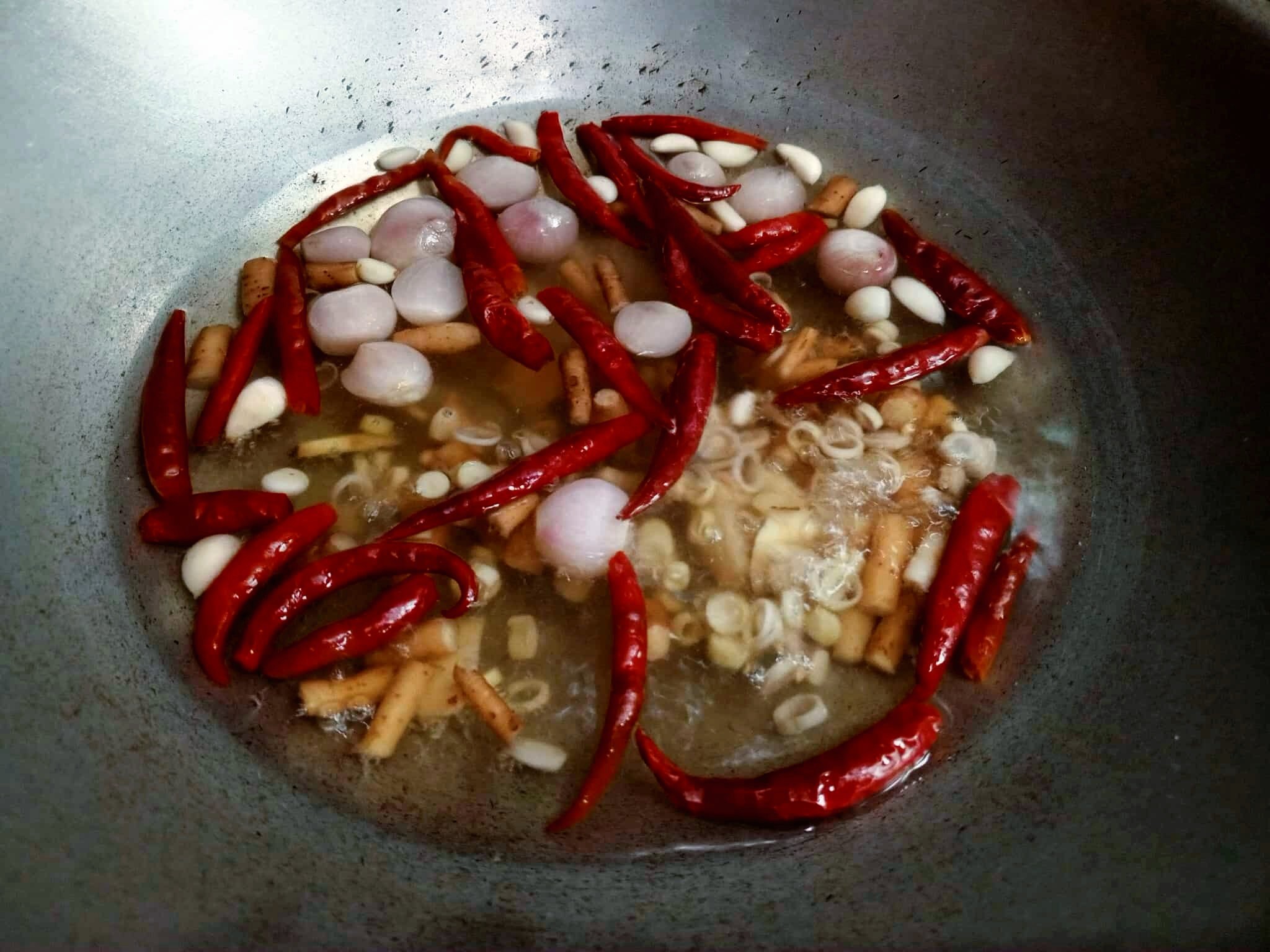 ต้มน้ำเปล่า ใส่พริกแห้ง ข่า ตะไคร้