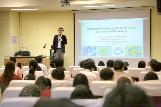 รศ. ดร.ทรงเกียรติ ภัทรปัทมาวงศ์ อาจารย์จากภาควิชาวิศวกรรมสิ่งแวดล้อม คณะวิศวกรรมศาสตร์ มหาวิทยาลัยเทคโนโลยีพระจอมเกล้าธนบุรี ได้นำเสนอการพัฒนางานวิจัยให้เป็นนวัตกรรม โดยเน้นการใช้ประโยชน์จากวัสดุทางด้านการเกษตรเป็นวัสดุที่มีมูลค่าเพื่อส่งเสริมเศรษฐกิจของประเทศ รวมทั้งประสบการณ์ที่ปรึกษาด้าน Carbon Footprint ในอุตสาหกรรมทางด้านการเกษตร เพื่อลดการปล่อยคาร์บอนและสนับสนุนการทำเกษตรกรรมอย่างยั่งยืน