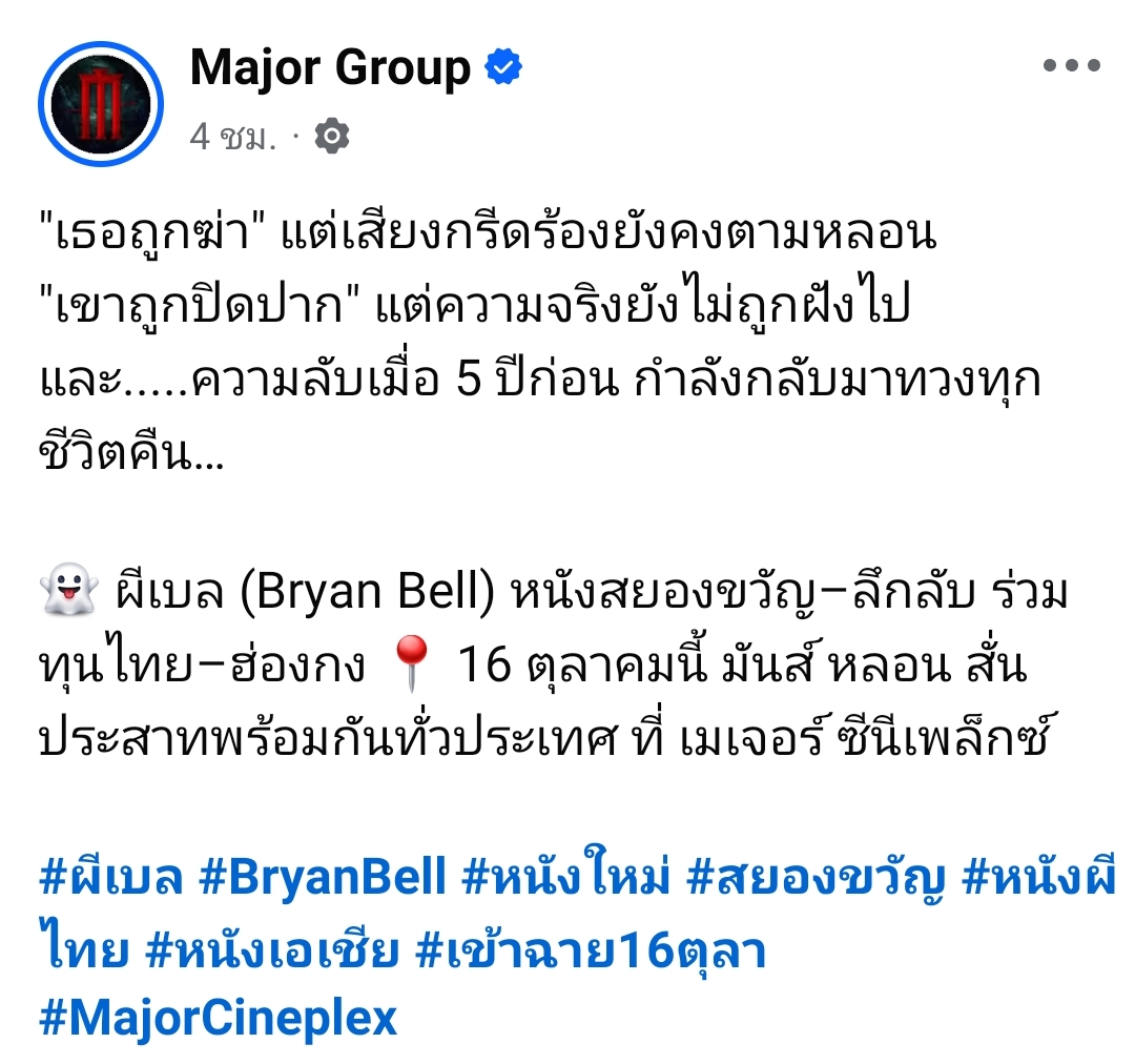 👻 ผีเบล (Bryan Bell) หนังสยองขวัญ–ลึกลับ ร่วมทุนไทย–ฮ่องกง 📍16 ต.ค. นี้ มันส์ หลอน สั่นประสาทพร้อมกันทั่วประเทศ