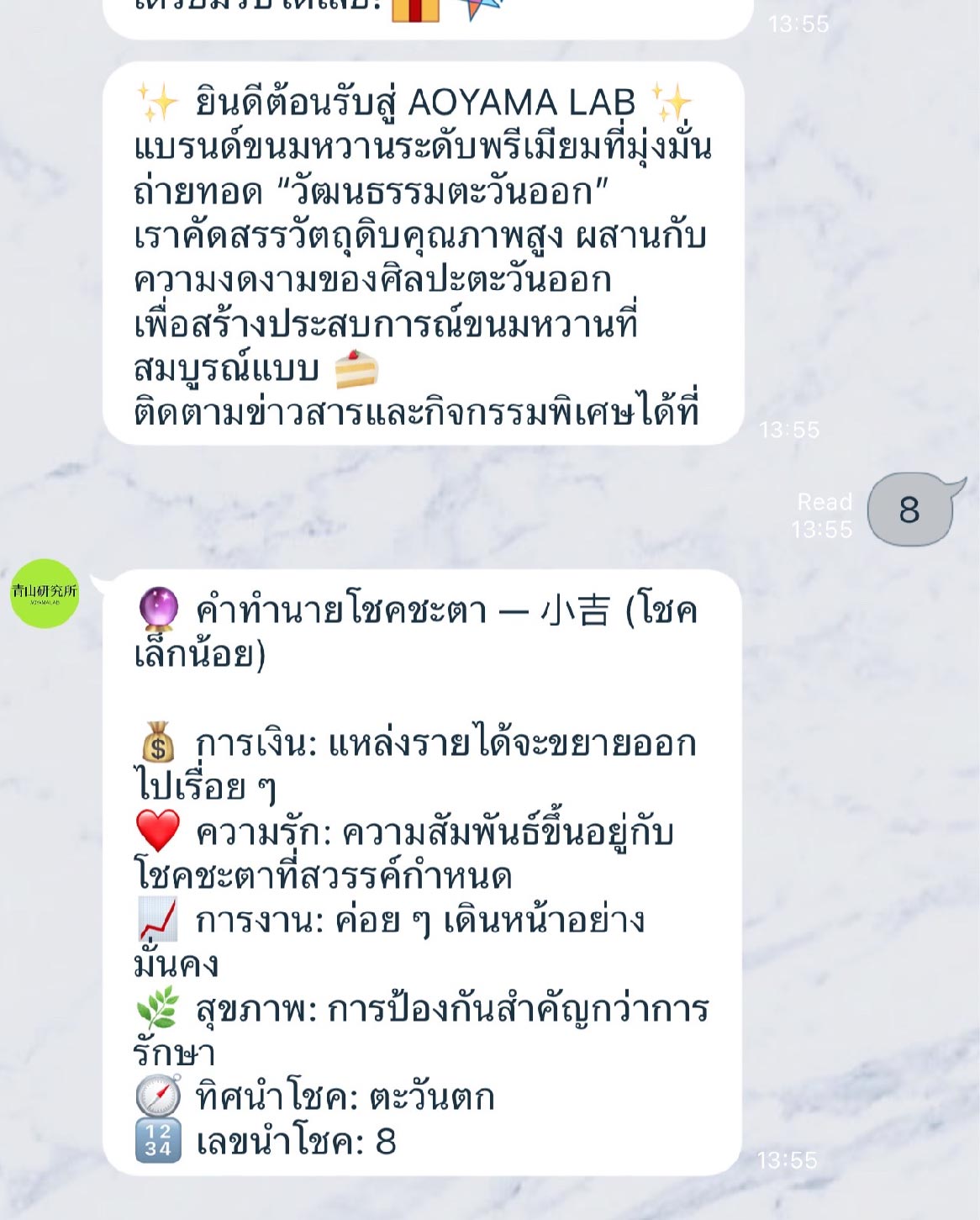 เพียงเอาไปจุ่มวาวที่บ่อน้ำชั้น 1 ดูเลขคำทำนายได้จาก add Line ร้าน