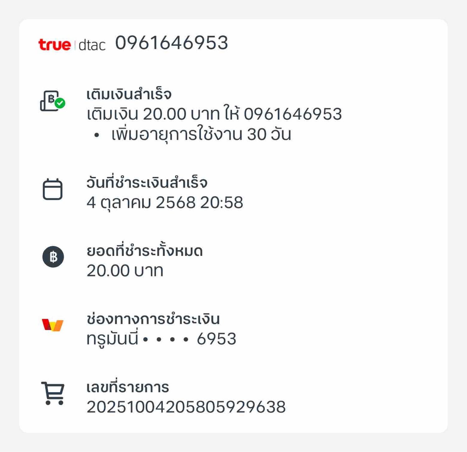 เติมเงินแล้วไม่หักค่าบริการเน็ตทรู