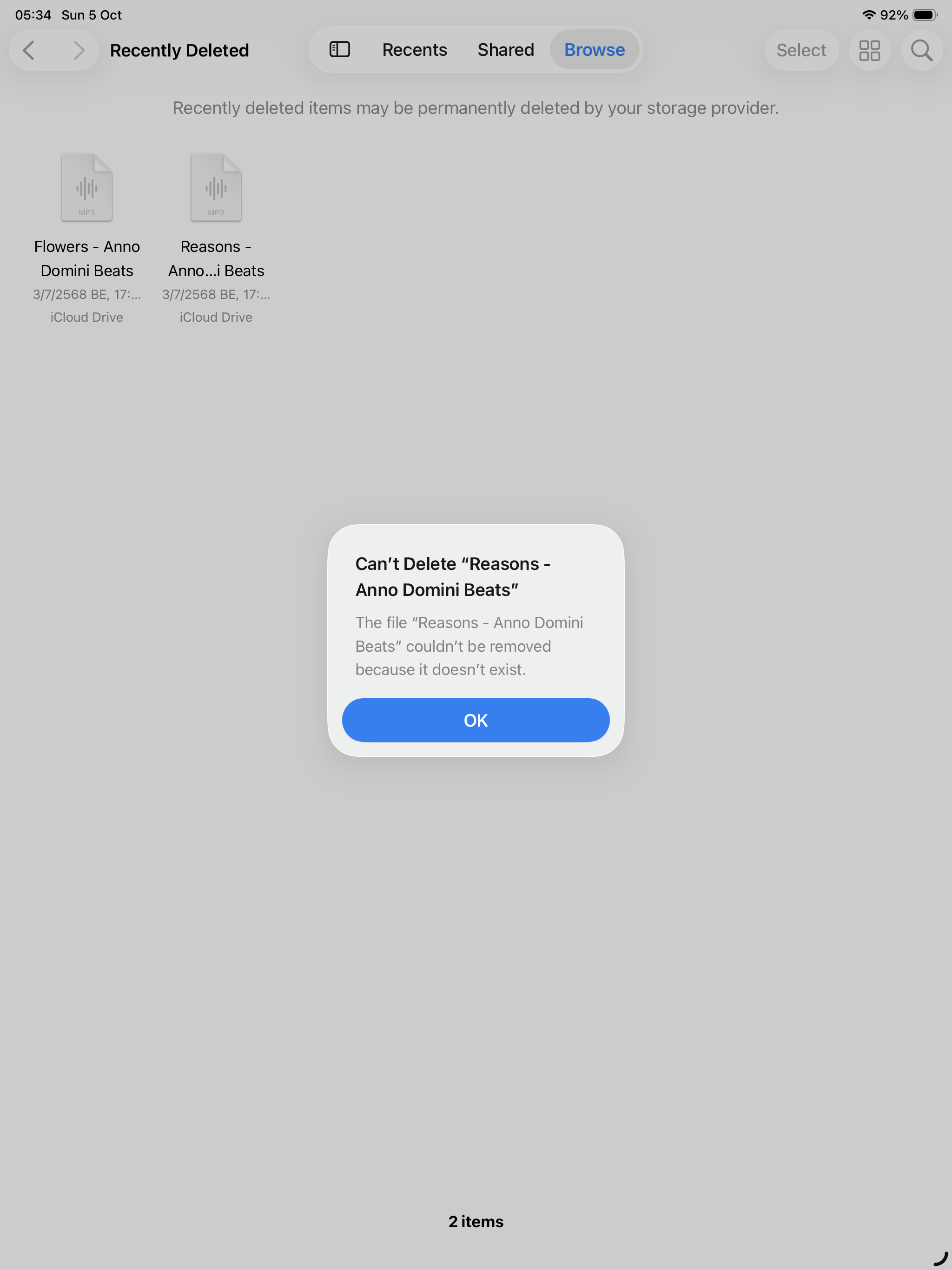 พอดีต้องการ ลบไฟล์ ใน recently deleted ใน app files ของ iPad