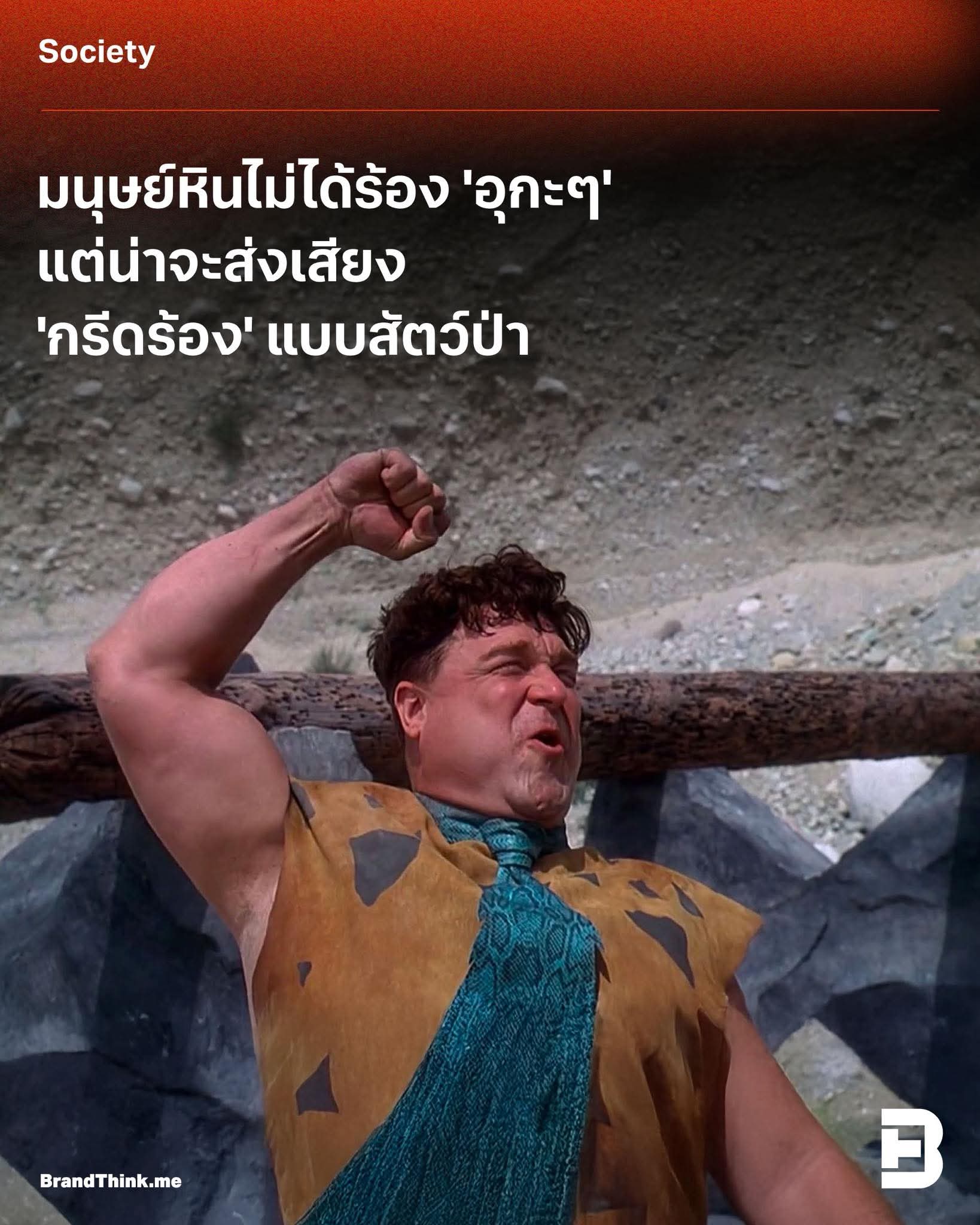 แต่เหนือสิ่งอื่นใด อยากให้เราลืมภาพจำของเสียงมนุษย์หินที่ร้อง “อุกะๆ” แบบในหนังหรือการ์ตูน เพราะนั่นดูจะไม่มีเค้าความจริงบนฐานความรู้ปัจจุบัน ไม่ได้ต่างจากการที่ทุกวันนี้เราต้องอัปเดตภาพของ ‘ไดโนเสาร์’ ว่าจริงๆ แล้วผิวหนังมันน่าจะปกคลุมด้วยขนแบบพวกนก มากกว่าจะมีผิวหนังแบบสัตว์เลื้อยคลาน