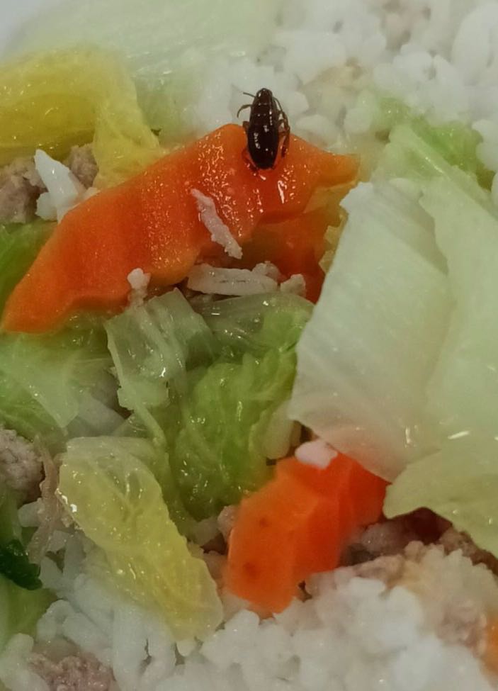แมลงในอาหารร้านข้าวราดแกง จะมีแมลงคล้ายลูกแมลงสาบ