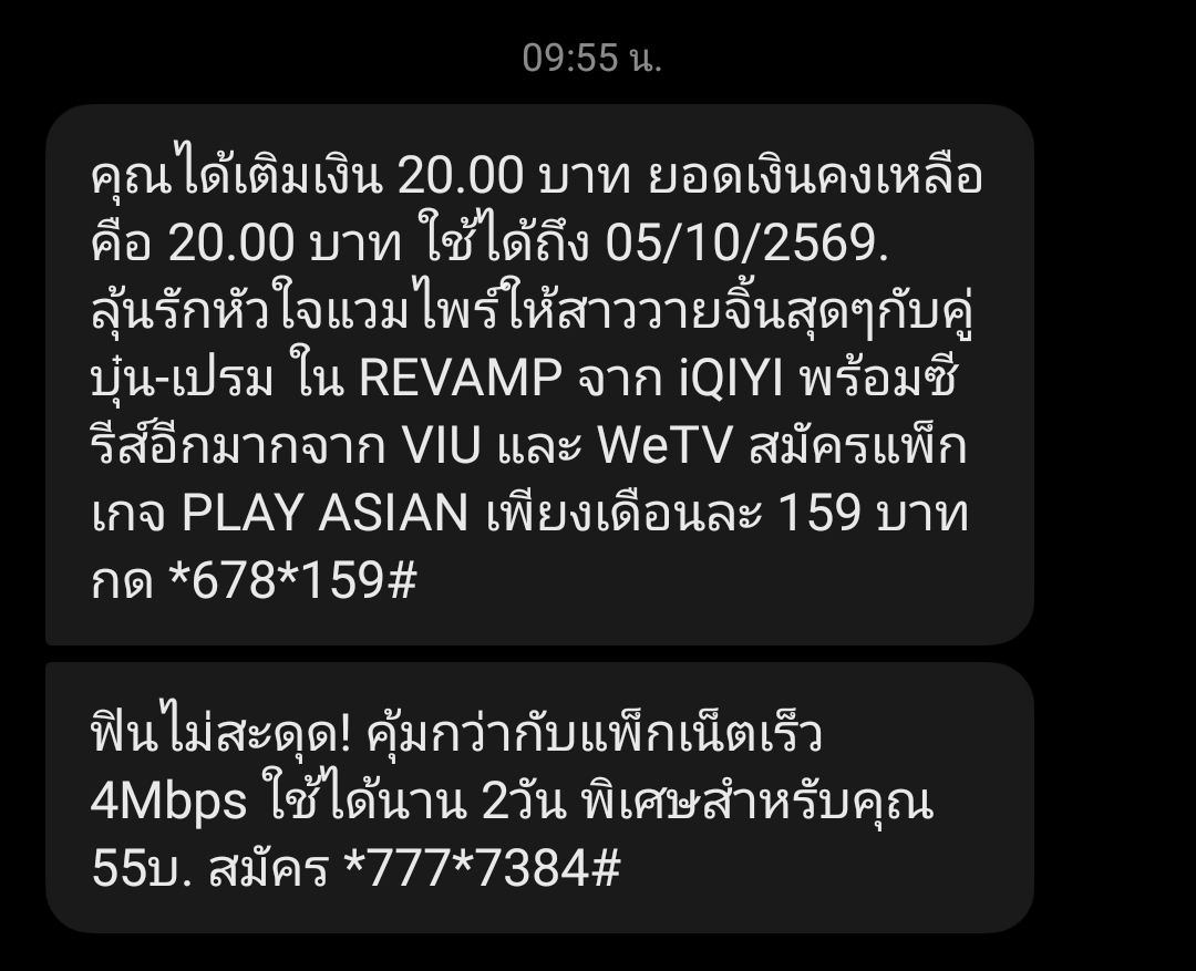 เนี่ยค่ะ คือเราเพิ่งเติม20บาท พอจะเติมเน้ท ที่มีราคา19บาท มันก็ขึ้นตังไม่พอ ก็เอ้า?? พอเช็คอีกเหลือ14บาท ได้ไง งงมาก เป็นแบบนี้แทบตลอดเลย ยกเลิกหมดทุกโปรแล้ว ทำไมตัดแบบนี้ตลอดเลย