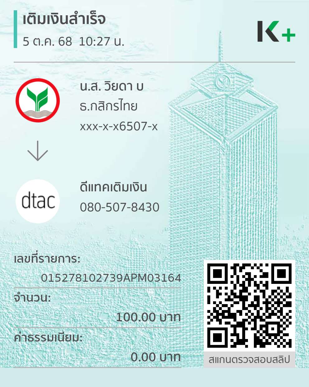 เติมเงินผิดเบอร์จากkbankไปดีแทค