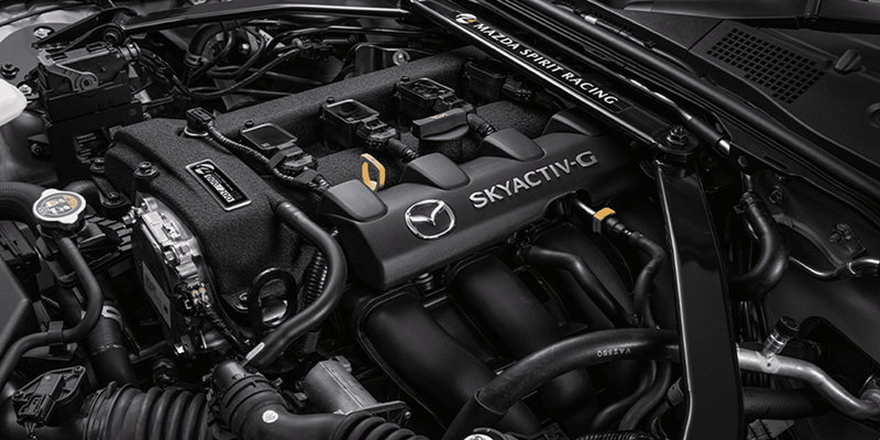 Mazda Spirit Racing Roadster ขับเคลื่อนด้วย เครื่องยนต์เบนซิน SKACTIV-G แบบ 4 สูบ ขนาด 2.0 ลิตร จับคู่เกียร์ธรรมดา 6 จังหวะ ขับเคลื่อนล้อคู่หลัง ในรุ่นเริ่มต้นมีกำลังสูงสุด 184 แรงม้า ที่ 7,000 รอบ/นาที ส่วนรุ่น 12R มีกำลังสูงสุด 200 แรงม้า ที่ 7,200 รอบ/นาที ส่วนขั้นตอนการเสกแรงม้าเพิ่ม มีทั้งขัดพอร์ตไอดีใหม่, ขยายท่อไอดี, เปลี่ยนแคมชาฟท์, และเปลี่ยน header จากแบบ 4-2-1 เป็น 4-1 นอกจากนั้น ยังขยายขนาดหม้อน้ำให้ใหญ่ขึ้น และเปลี่ยน flywheel ชุดคลัชต์ใหม่