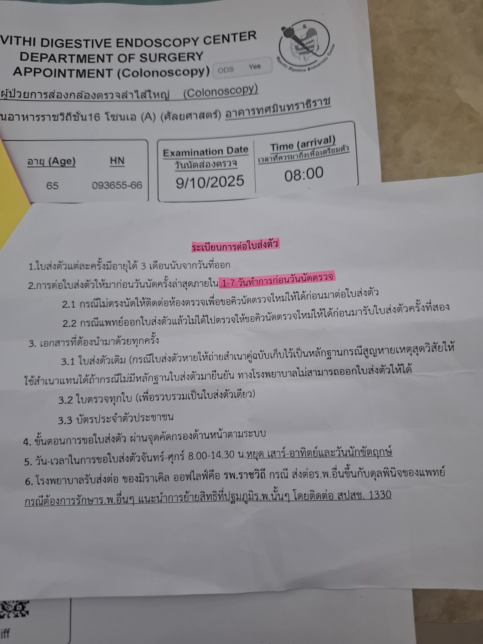 ในนั้นระบุว่า ขอภายใน 1-7วันทำการก่อนวันนัดตรวจ