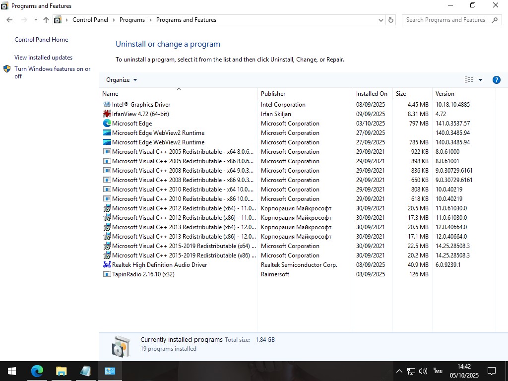 1.ลบโปรแกรมที่ไม่ได้ใช้ เหลือโปรแกรมที่ใช้จริงๆเท่านี้จ๊ะ IrfanView Microsoft Edge TapinRadio