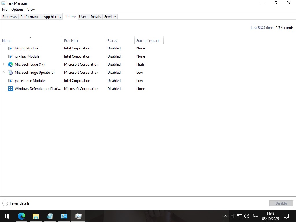 2.ปิดสตาร์ทอัพที่ไม่ได้ใช้โดยปรึกษาเอไอว่าตัวไหนควรปิด ตัวไหนไม่ควรปิด เมื่อรู้ว่าสามารถปิดได้ทุกตัวไม่มีผลต่อเครื่องเลยปิดหมดเลย ผลเครื่องใช้งานได้ดีไม่มีปัญหาเปิดเครื่องได้เร็วมาก ไม่เกิน 20วิ ฮาดดิสแบบจานหมุน ปิดแบบไฮเบอเน็ทจ๊ะ