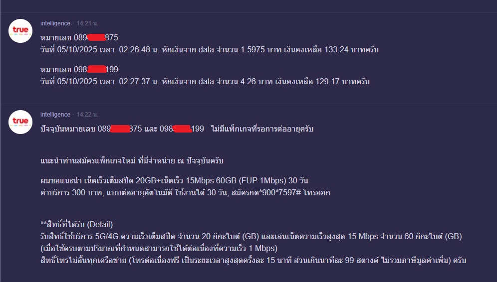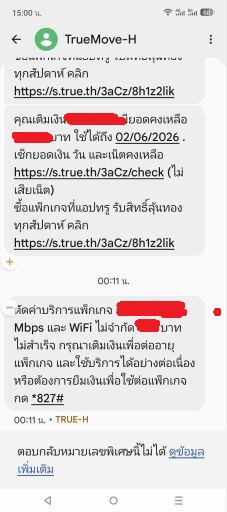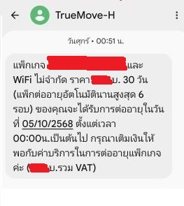- ศุกร์ที่ 3 ที่ผ่านมามี sms เตือนให้เติมเงินต่อโปรเหมือนทุกครั้งที่ผ่านมา
