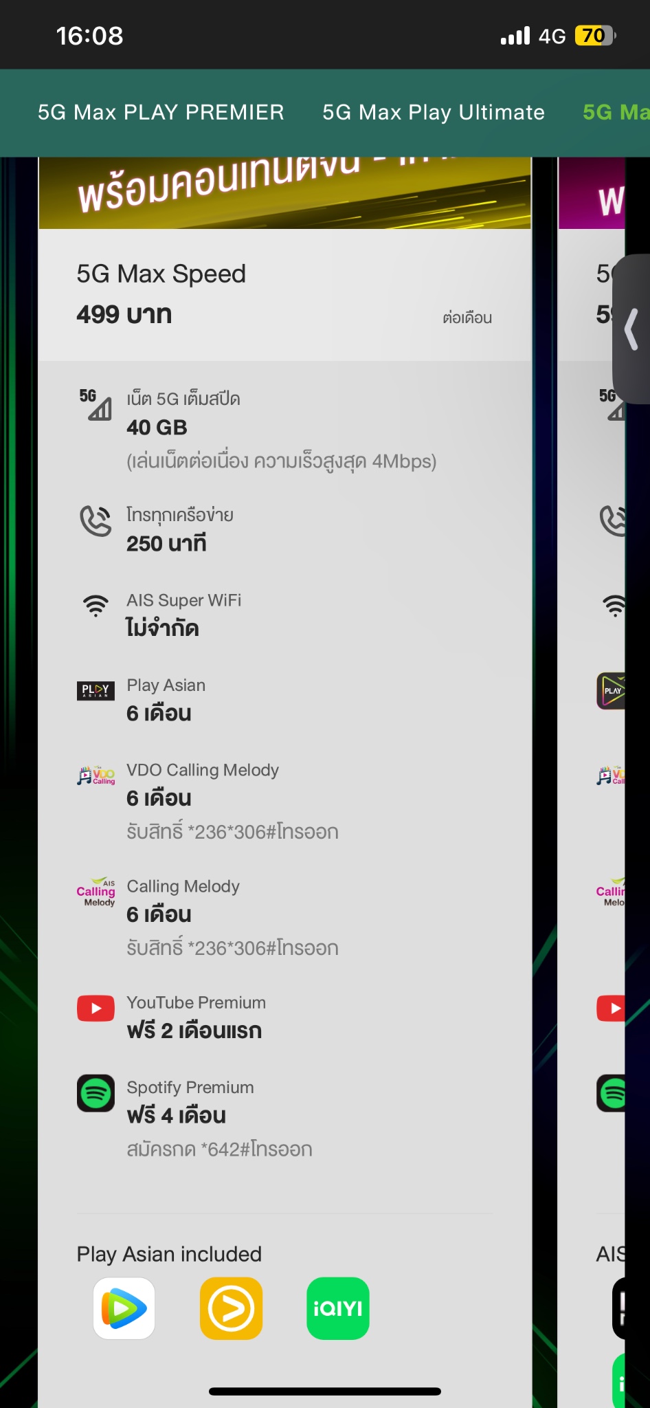 ต้องการใช้เน็ต 5G Max Speed 499 บาทais