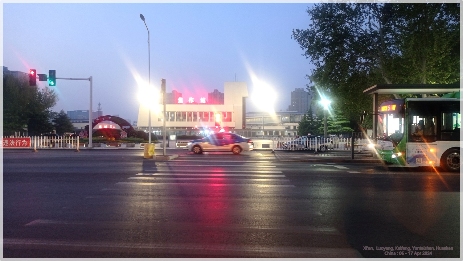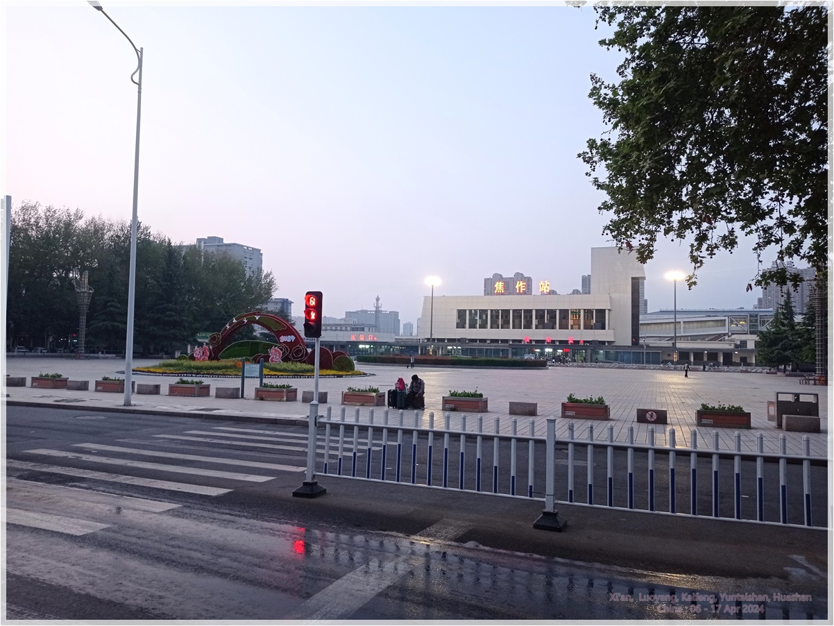 ตื่นตี5 เช็คเอาท์จากโรงแรมเมืองเจี้ยวจั้วตอนตี 5ครึ่ง เอากุญแจวางไว้ที่เคาร์เตอร์ เดินไปรอรถเมล์สาย3 ที่ป้าย