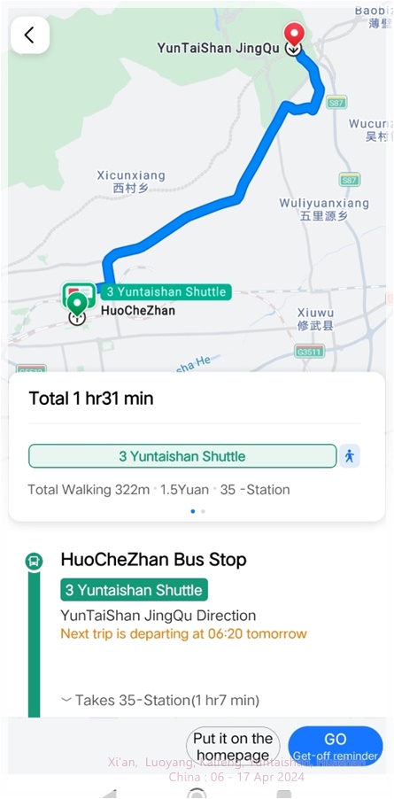 06.20น. รถเมล์สาย3 云台山 มาตามเวลา ค่าโดยสาร 4CNY