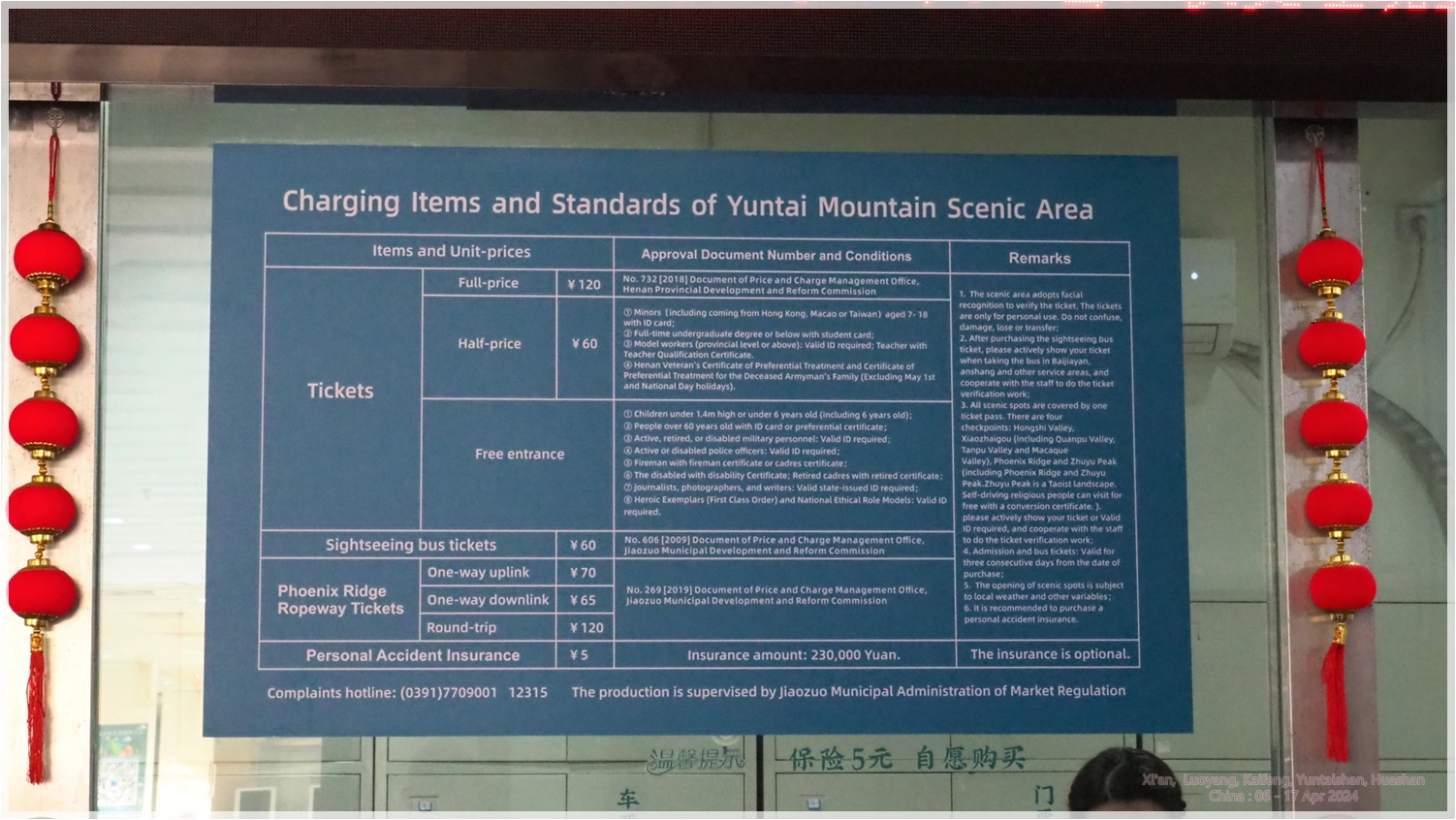 ตั๋วเข้าอุทยาน 120CNY (อยู่ได้3วันต่อเนื่อง)