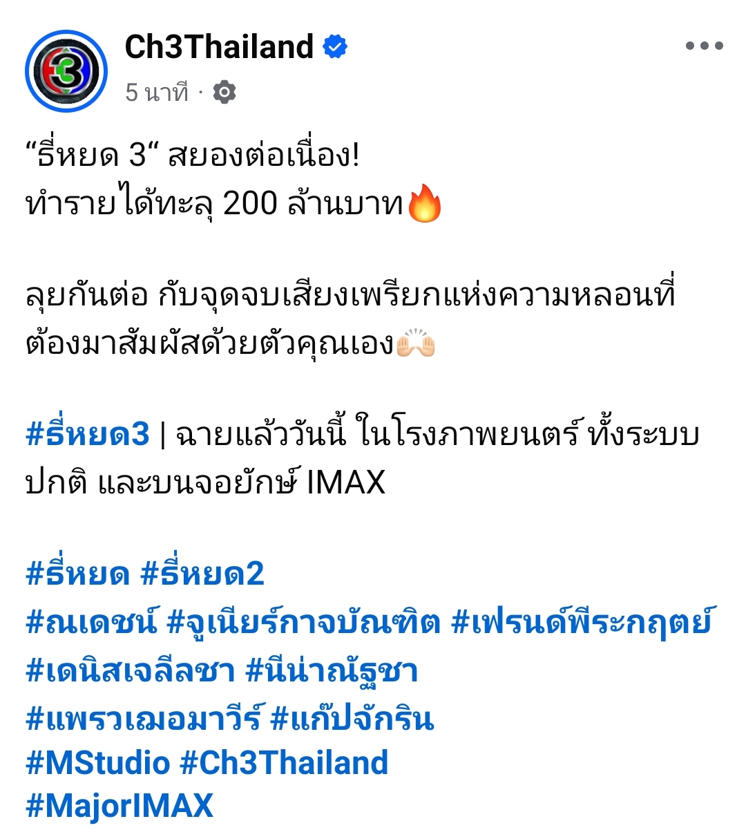🎞 “ธี่หยด 3“ สยองต่อเนื่อง! ทำรายได้ทะลุ 200 ล้านบาท 🔥