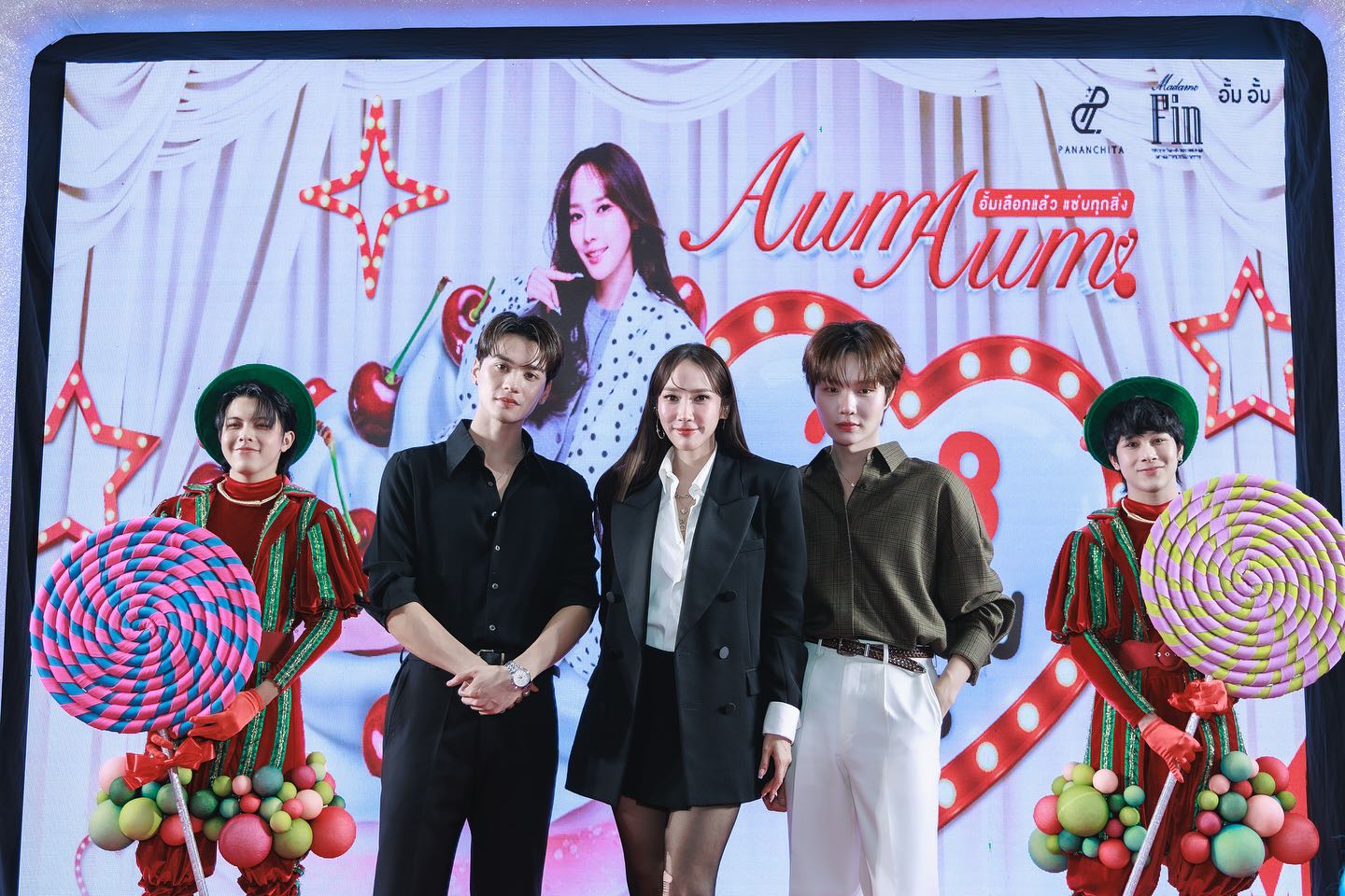 ก่อนจะยอมรับว่าปลื้มหนักมากจนต้องดึงมาร่วมงานเปิด “AumAum” ครั้งที่ 3 เพราะอยากเจอเป็นการส่วนตัว ก่อนจะแอบยิ้มเล็กน้อยบอกว่า “อย่าเรียกว่าเราเอาเงินจ้างเขามา ให้เรียกว่าเรามีใจให้กันและกัน” ซึ่งตอนแรกเจ้าตัวยังคิดอยู่เลยว่า “เก่ง-น้ำปิง” เป็นคนเดียวกัน พอรู้จักจริง ๆ แล้วก็เข้าใจว่าเป็นคู่จิ้น นอกจากนั้นยังไหว้สวยขอบคุณทางค่ายที่อนุญาตให้น้อง ๆ มาร่วมงานนี้ด้วย