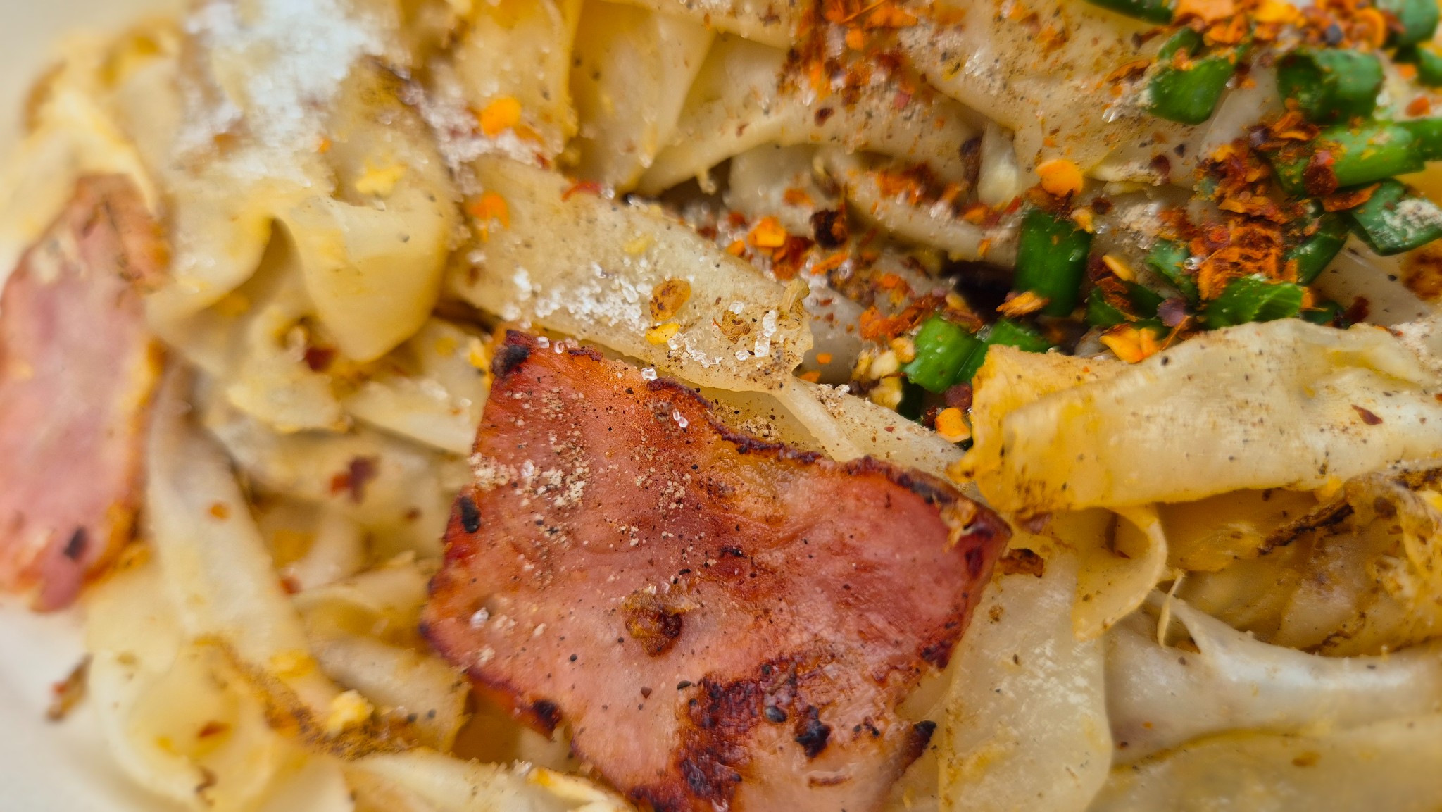เตี๋ยวคั่วเบค่อนก็อร่อยดี เส้นนุ่ม เบค่อนอร่อย แต่ไม่มีกลิ่นกระทะ