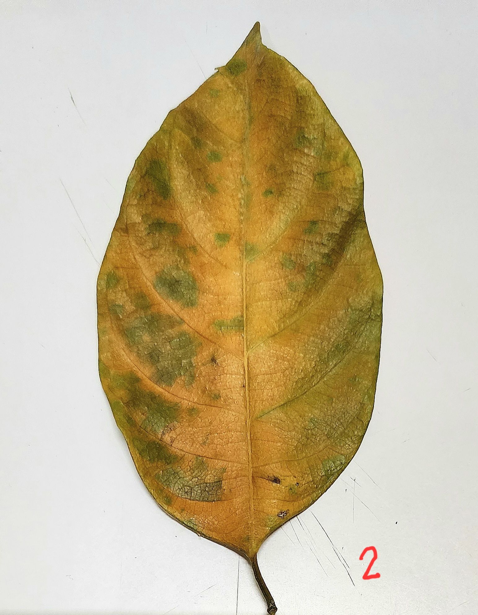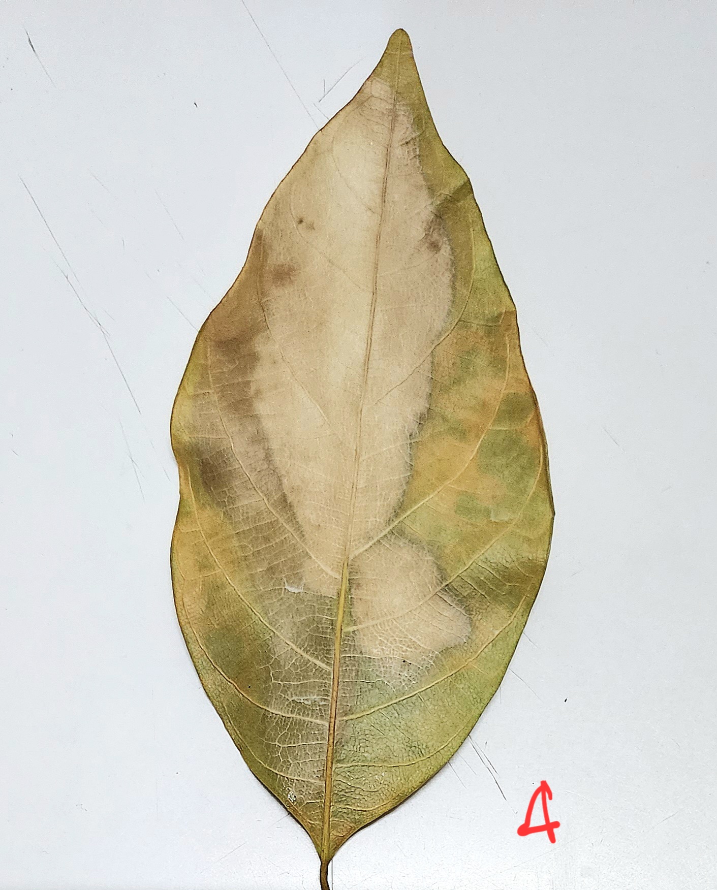 รูปสอง ใบจะเริ่มเป็นสีเหลืองด่างๆ ทั้งใบ