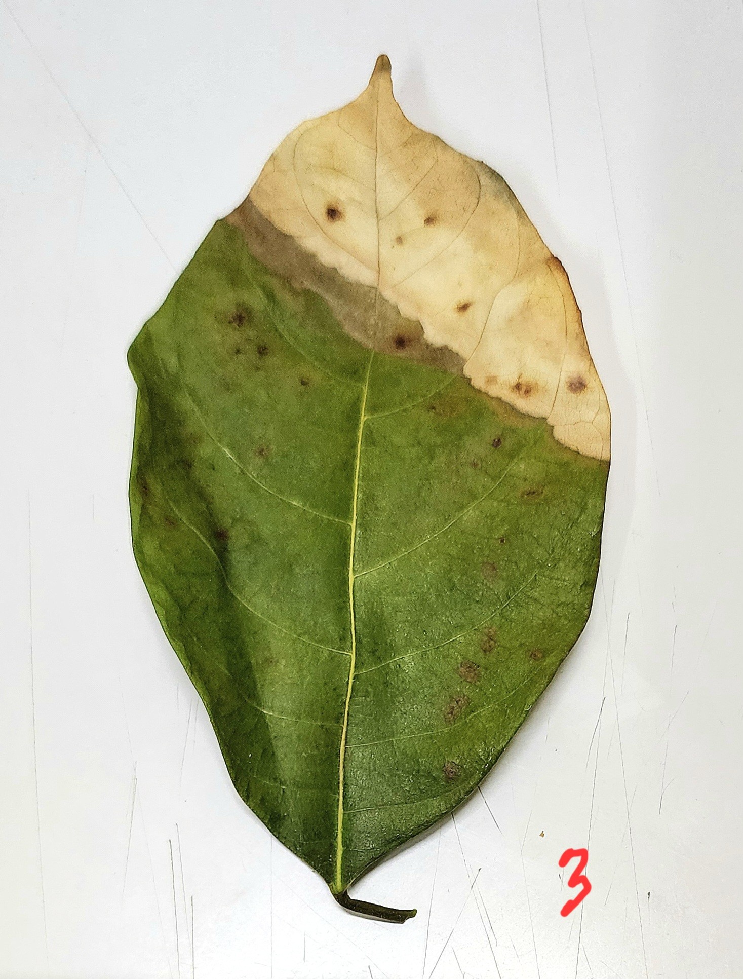 รูปสาม เริ่มมีแถบขาว เล็กที่ขอบใบ