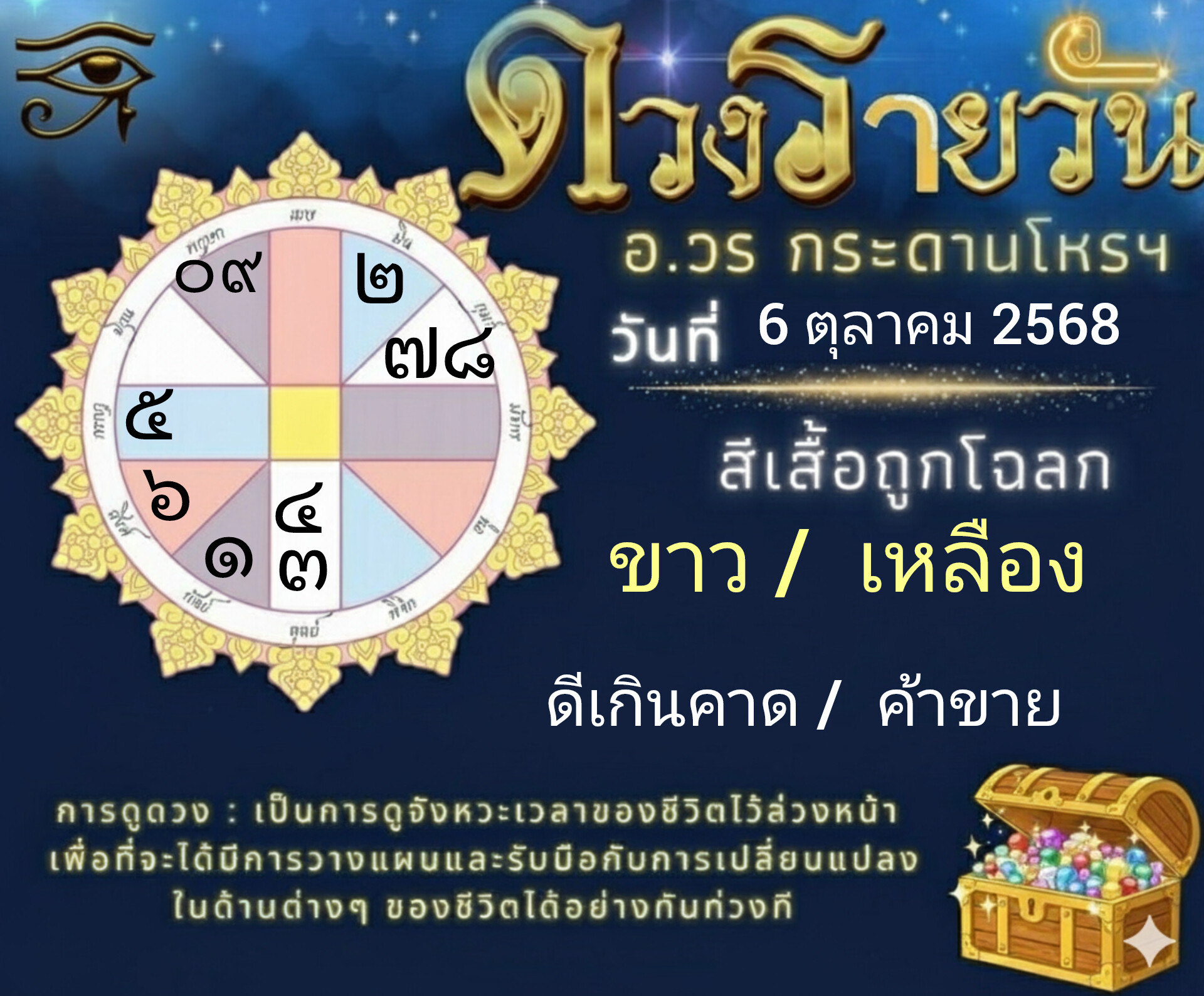 Ψ ☀ ดวงวันนี้ 6 ตุลาคม พ.ศ. 2568 โดย อ.วร กระดานโหรฯ ☀ 卐