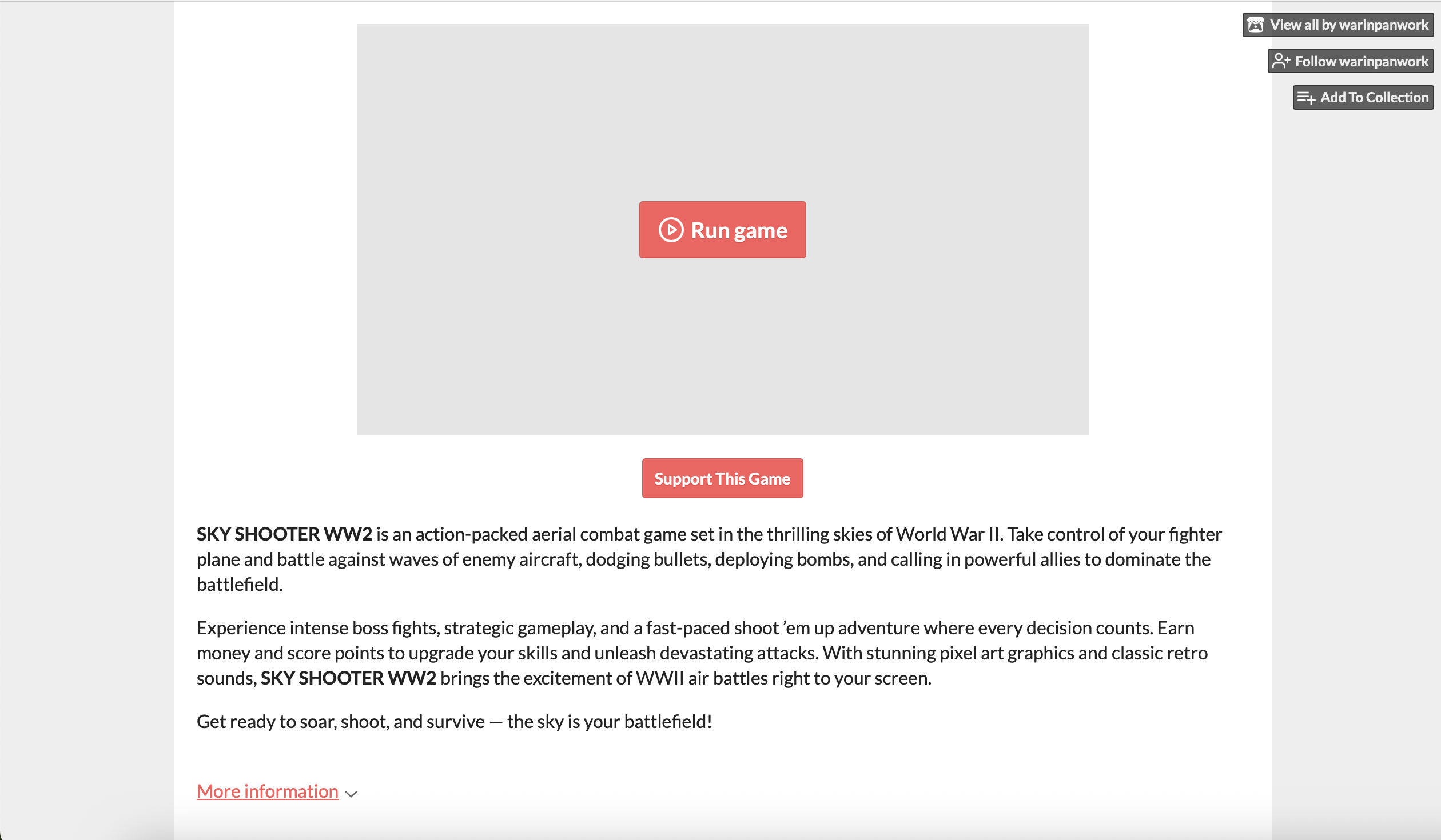 เล่นเลย: https://warinpanwork.itch.io/sky-shooter-ww2