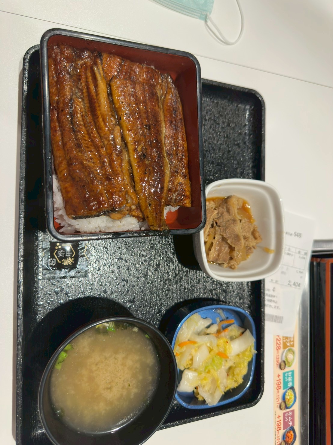 เมนูข้าวหน้าปลาไหล หมูผัดหอม ซุปน้ำแกง ราคา 2,404 รวม Vat