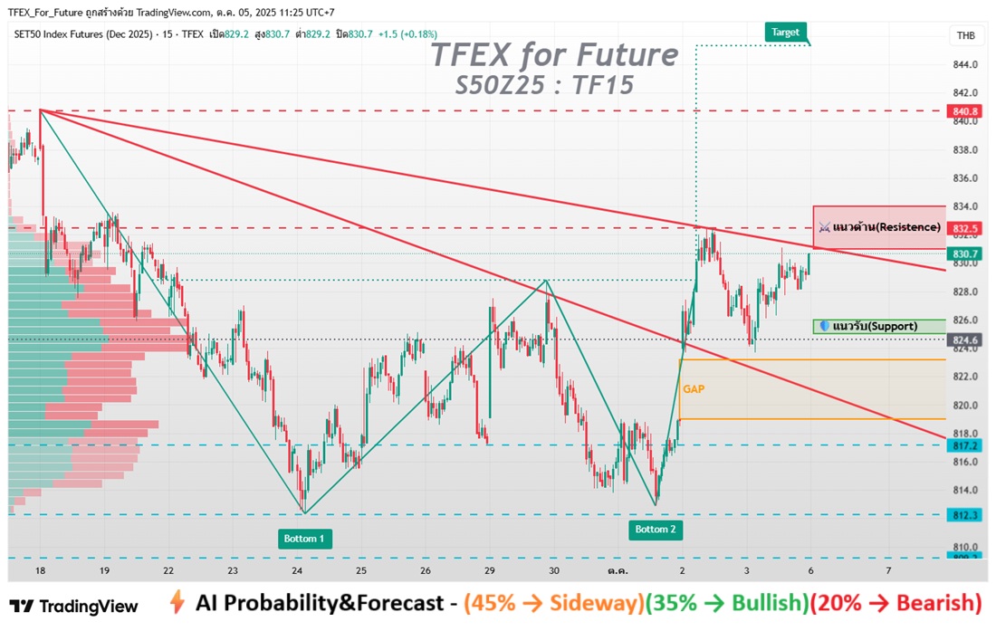 🔹 35% → Bullish Break 832 → ลุ้นทดสอบ 840–841