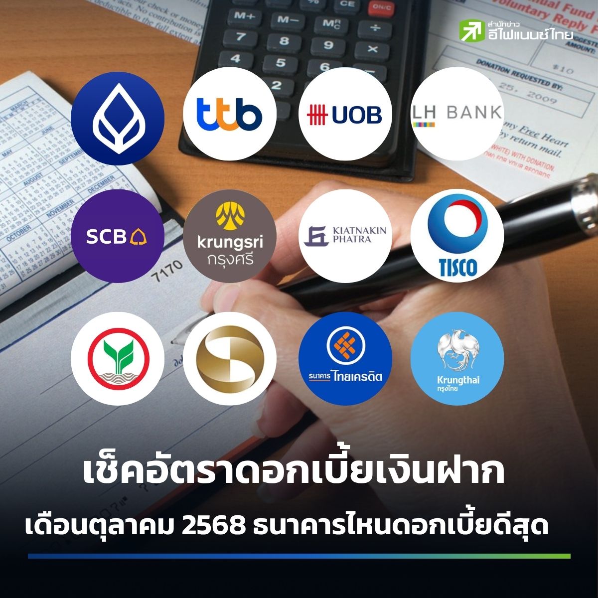 เดือนตุลาคม 2568 จากธนาคารแห่งประเทศไทย เพื่อเป็นแนวทางให้คุณได้พิจารณาและเลือกสรรผลิตภัณฑ์เงินฝากที่ตอบโจทย์ไลฟ์สไตล์และเป้าหมายทางการเงินของคุณได้อย่างดีที่สุด