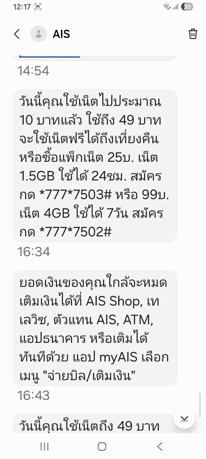 ปัญหา AIS เติมเงิน แล้ว แพคเน้ตไม่หัก