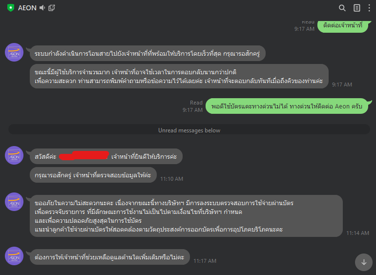 สอบถามเรื่องบัตรเครดิต AEON หมดอายุแล้วไม่ได้รับใบใหม่ และไม่แจ้งอะไรเลย