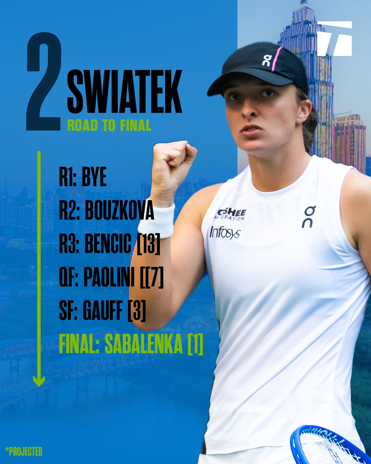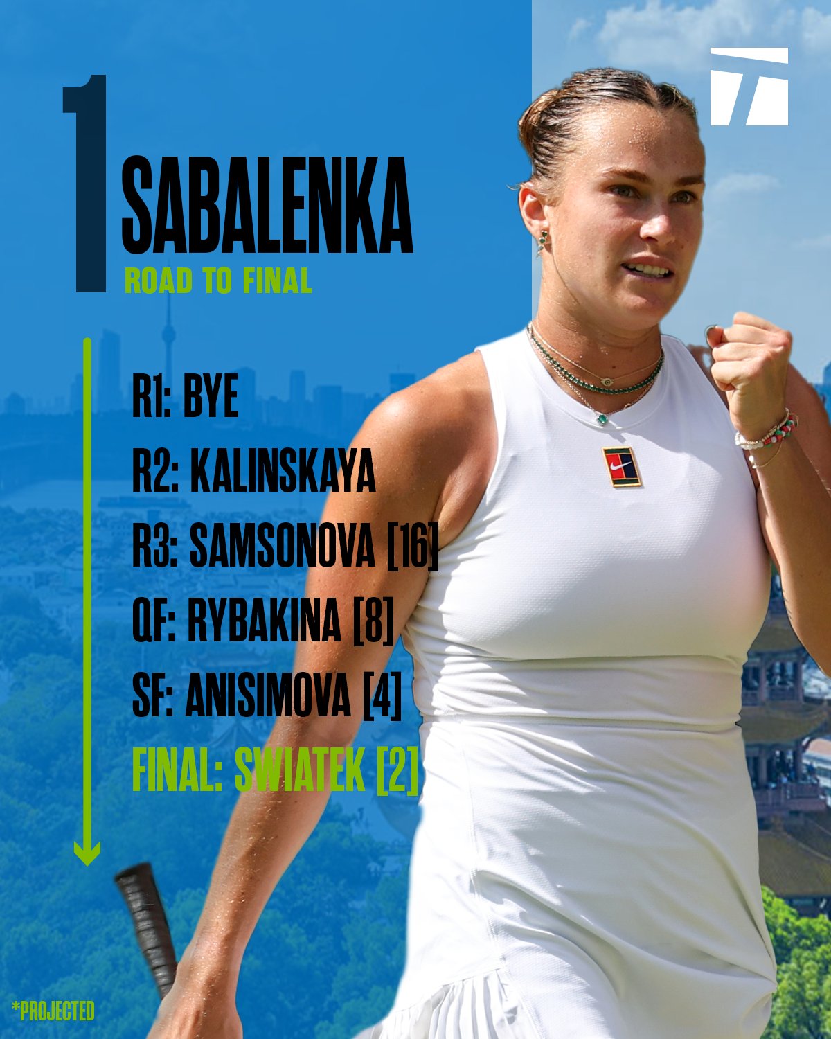มาดูสายการแข่งขันรายการ Wuhan Open ซึ่งเป็นรายการระดับ WTA 1000 กันเลยค่ะ จะเห็นว่านักเทนนิสหญิงตัวท้อปๆลงแข่งกันคับคั่ง ทั้ง Aryna Sabalenka (คนนี้ร่างกายสดที่สุดเพราะได้พักและซ้อมมาเกือบ 1 เดือนเต็ม) Iga Swiatek Coco Gauff Amanda Anisimova Elena Rybakina Jessica Pegula Naomi Osaka Mirra Andreeva .ฯลฯ