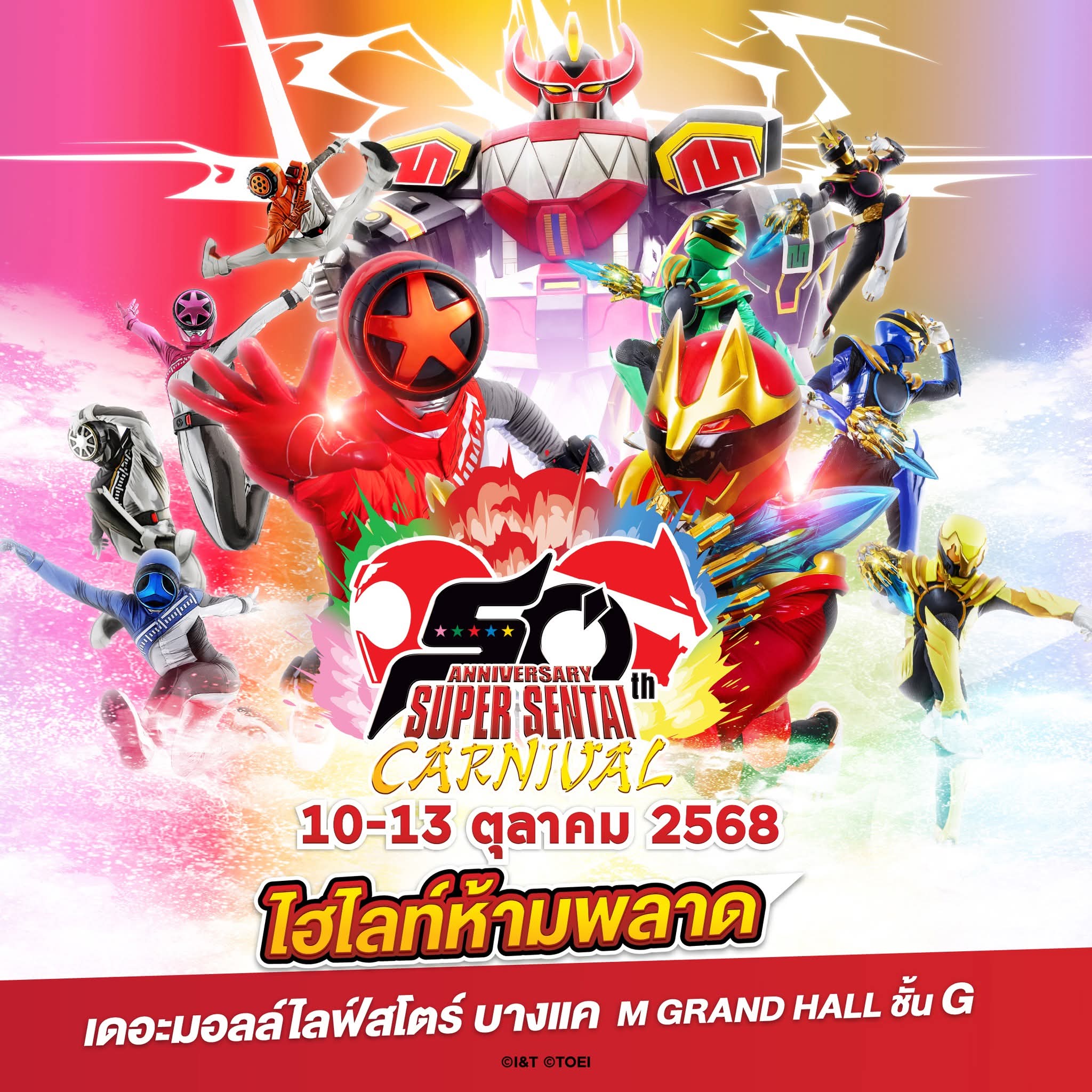 มาสนุกกับเหล่าฮีโร่ขบวนการ 5 สี ชื่อดังจากญี่ปุ่น ในงาน 50TH ANNIVERSARY SUPER SENTAI CARNIVAL ครั้งแรกในไทย กับการรวมไฮไลท์ที่แฟนๆซีรีส์ห้ามพลาด