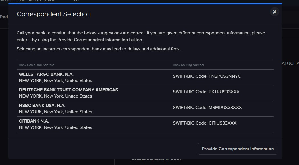 Correspondent Bank ของ SCB ในการรับเงินจาก Interactive Brokers (IBKR)