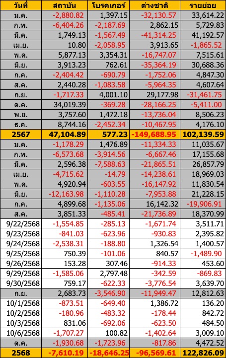 Sinthorn Summary 30/9/2568 : ต่างชาติขายสุทธิ -3,776.54 ลบ.