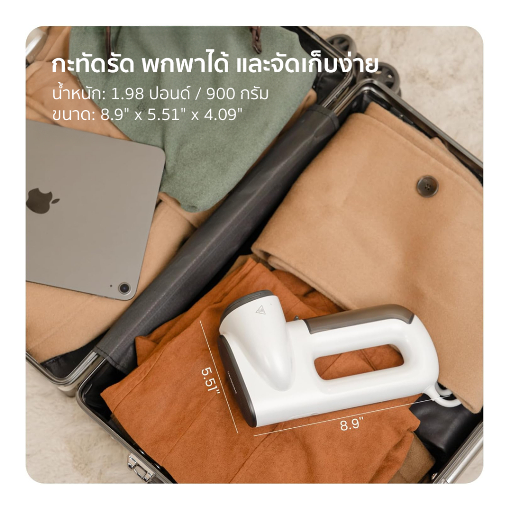 ขนาดกะทัดรัด 8.9×5.51×4.09 นิ้ว ถือสบาย จัดเก็บง่าย เหมาะกับหอพัก คอนโด และพกขึ้นกระเป๋าเดินทางได้โดยไม่กินที่