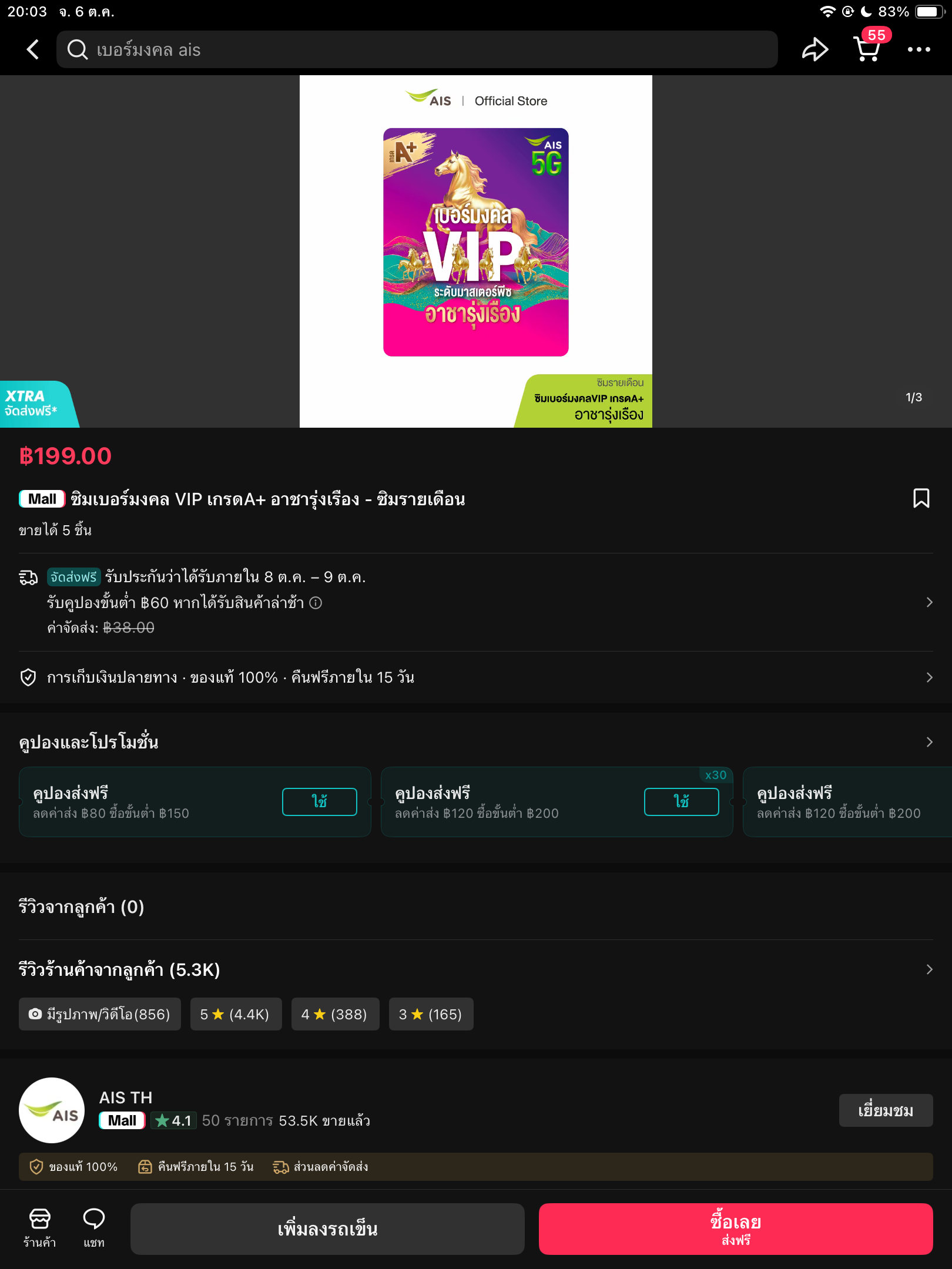 สวัสดีค่ะตั้งใจจะซื้อเน็ตของ AIS จะเป็นรายเดือนราคาประมาณ 300 แบบไม่ลดสปีด หรือจะเป็นรายเดือนราย 6 เดือน ช่วยหลังไมค์ให้ทีค่ะเพราะไม่รู้ว่าจะติดต่อกับ AIS ทางไหนหรือหาโปรโมชั่นจากทางไหน